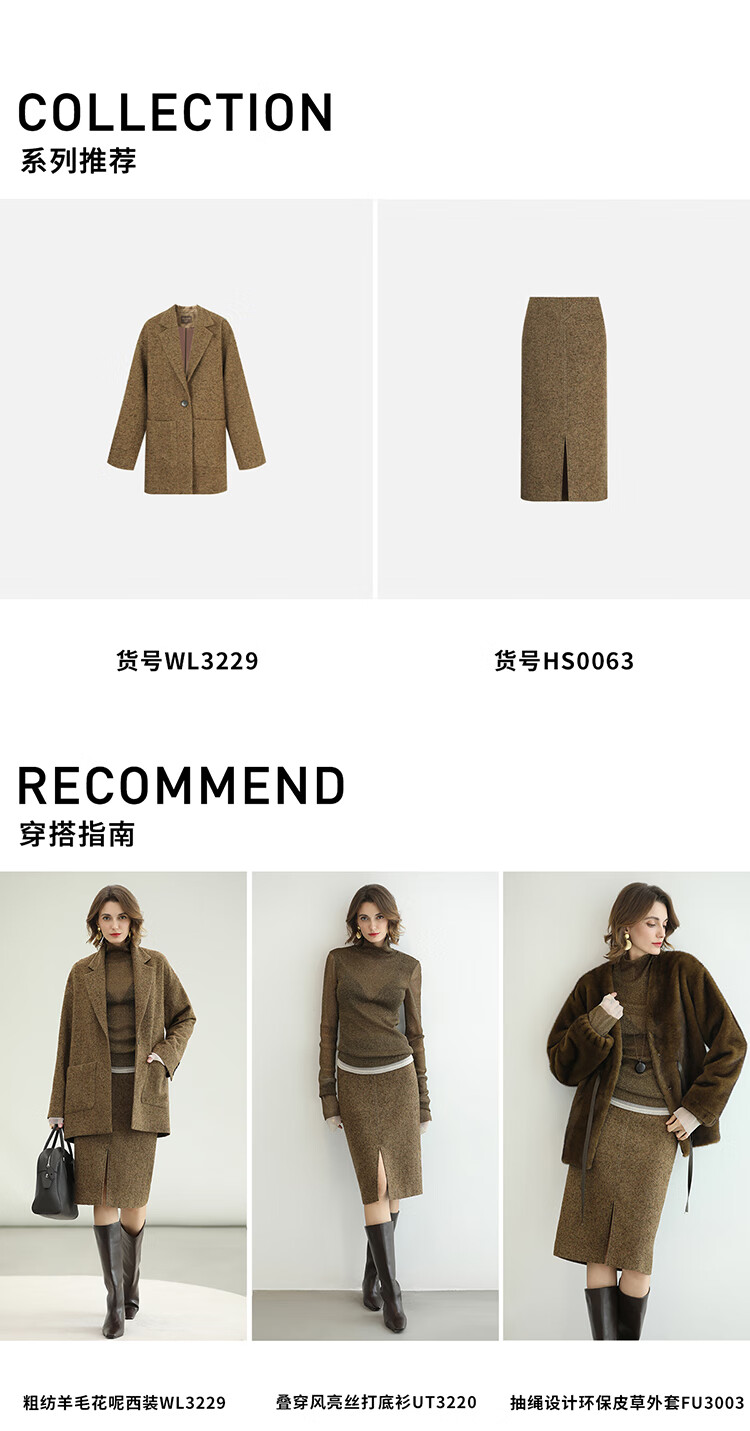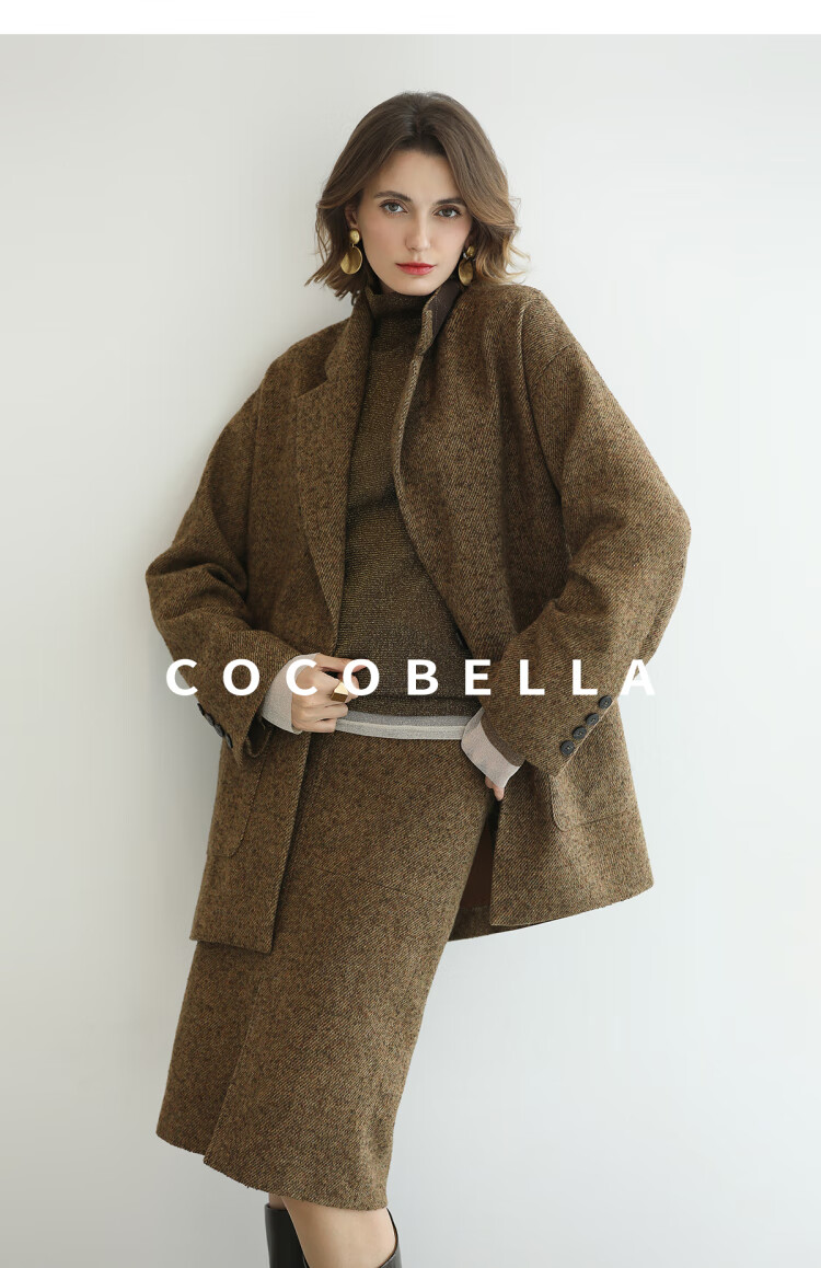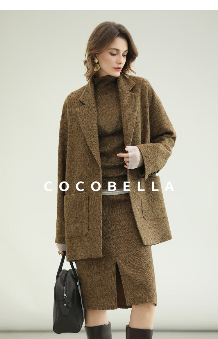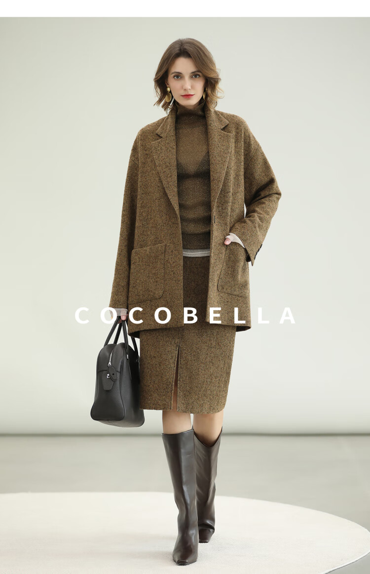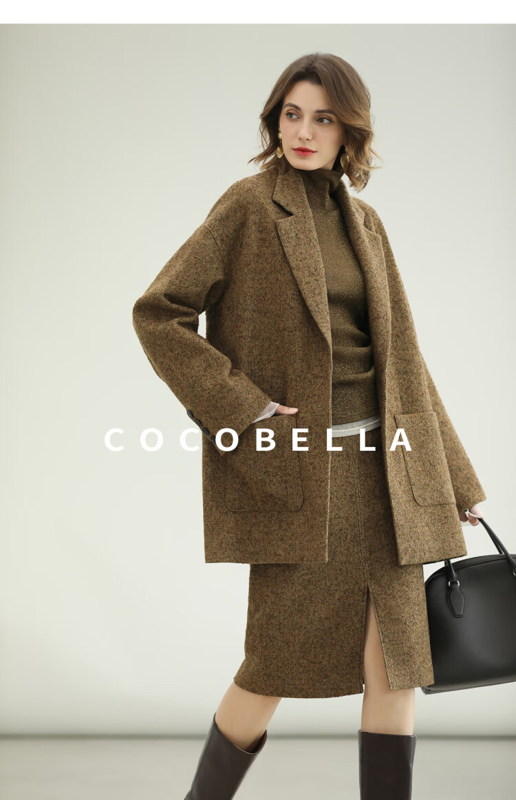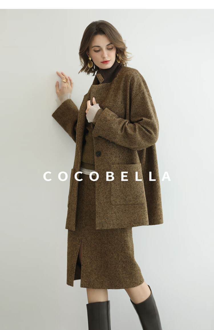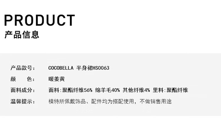 COCOBELLA气质美拉德羊毛半身裙女秋冬前开叉直筒短裙HS0063