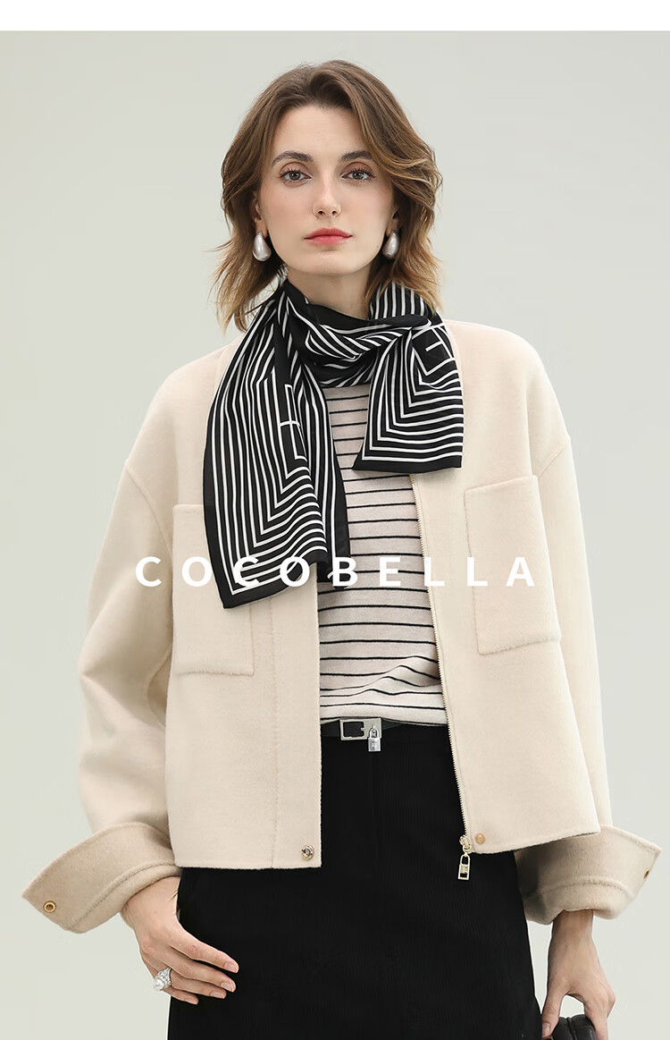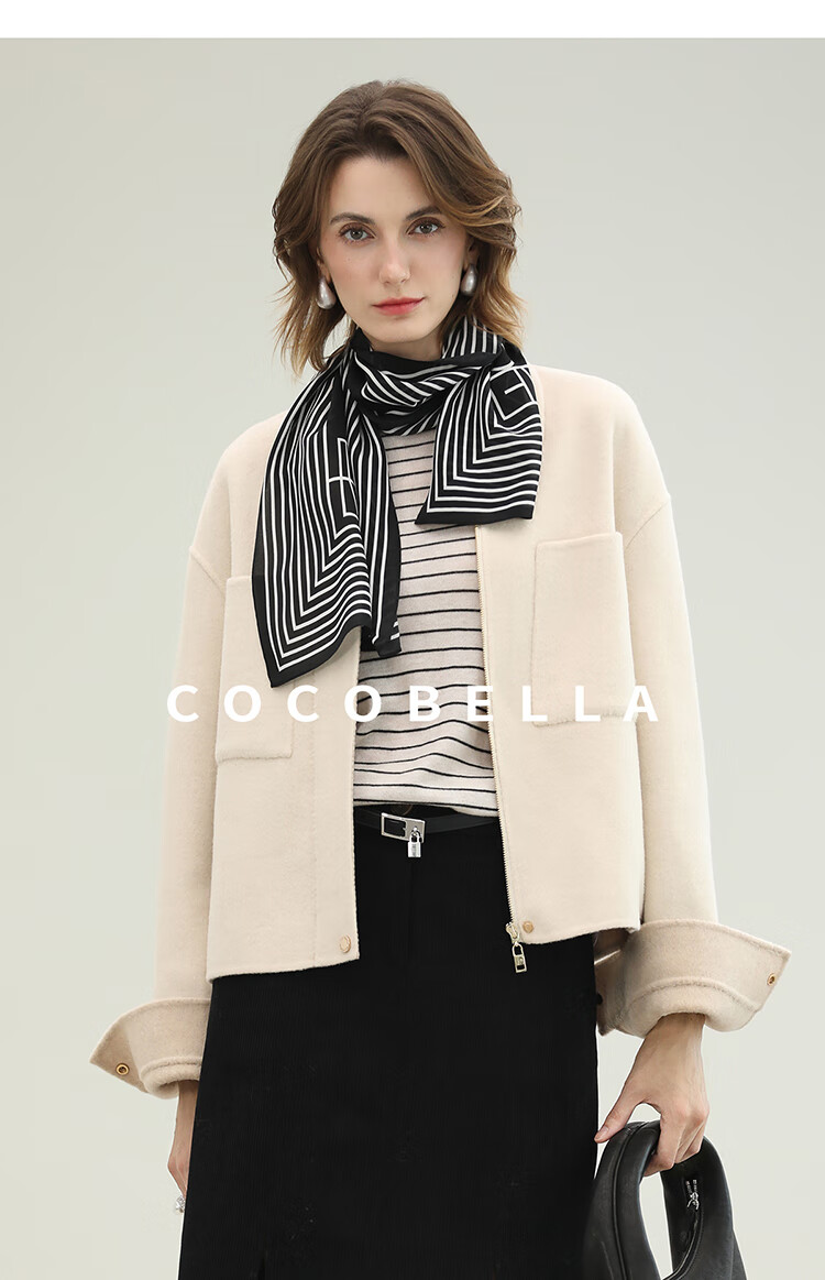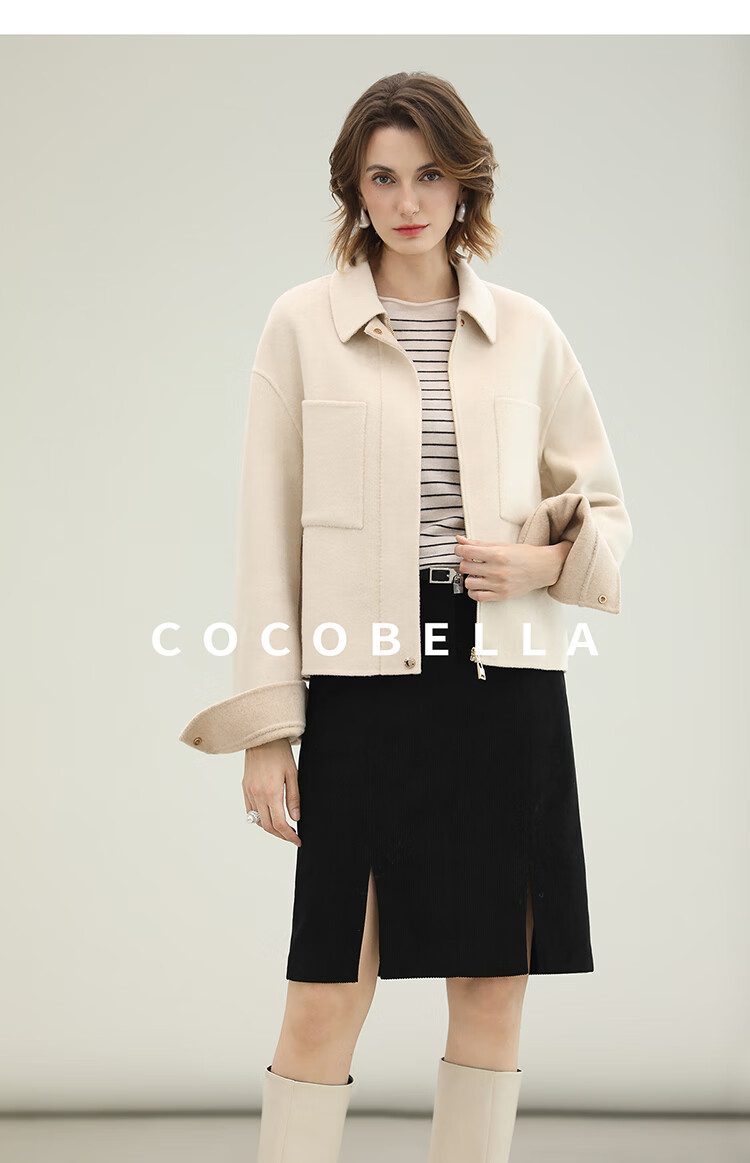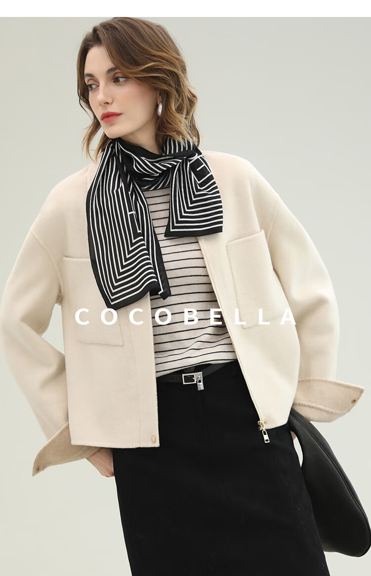 COCOBELLA手工双面呢短款羊毛外套女秋冬休闲毛呢大衣WL3219