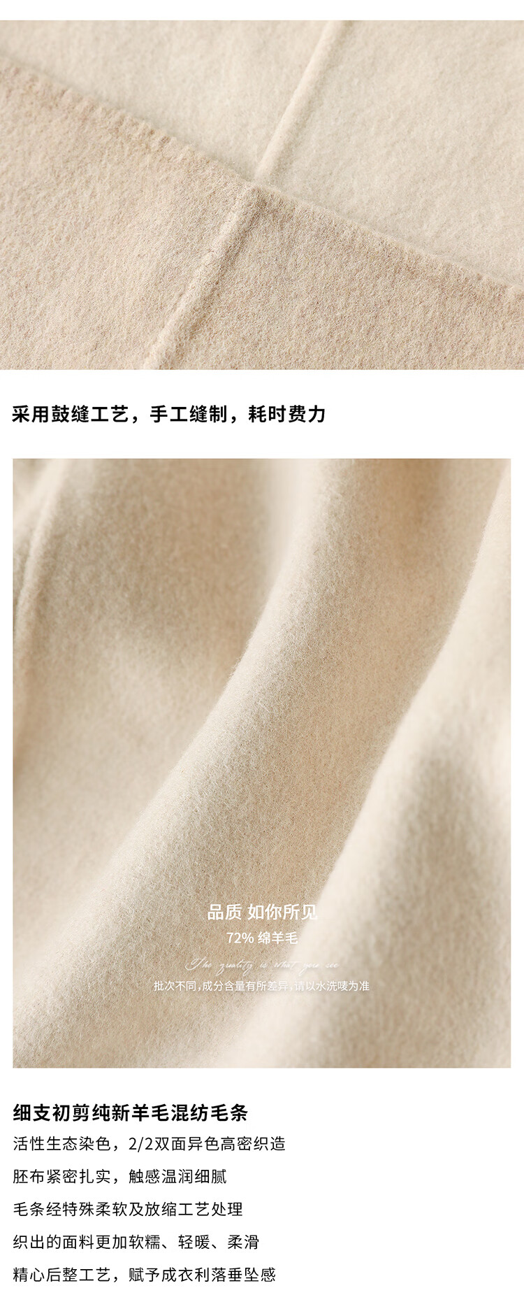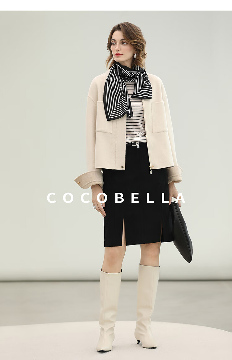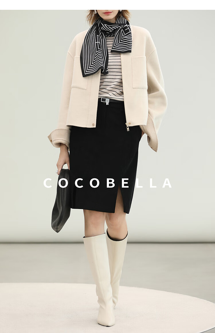 COCOBELLA手工双面呢短款羊毛外套女秋冬休闲毛呢大衣WL3219