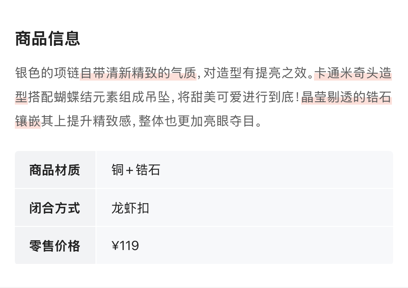 HAYES 米奇头造型锆石项链 6710