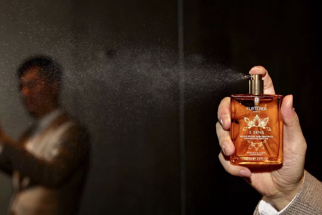 梳理秀发时,先将五重多效护理油喷洒1-2次并涂抹于发梢,秀发随时随地闪耀光泽,减少蓬乱感,完美造型的点睛之笔。