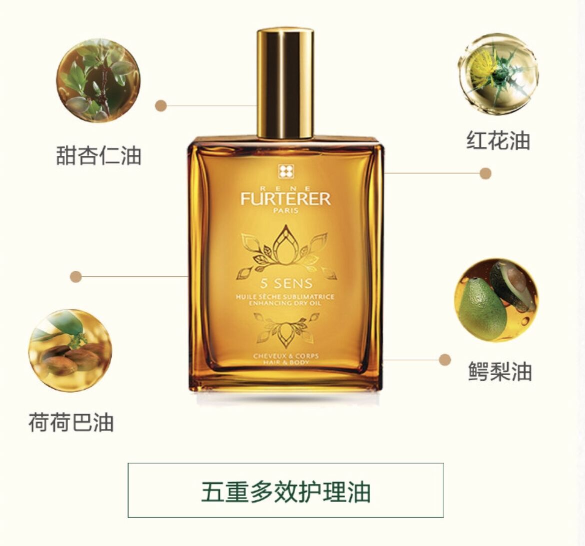 洗发后拭干头发,在发中至发尾涂抹五重多效护理油,再用热毛巾包裹起来等待10分钟,如一次深层滋养的发膜护理,秀发重回弹润亮泽