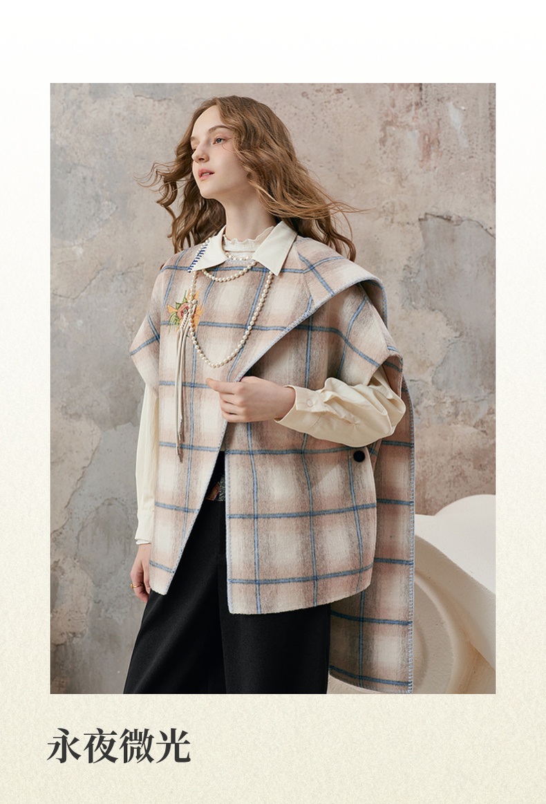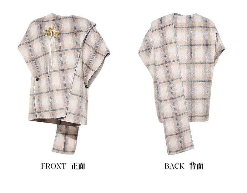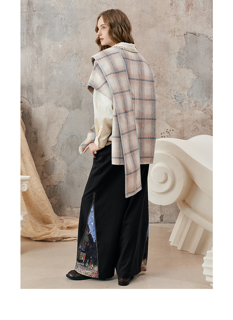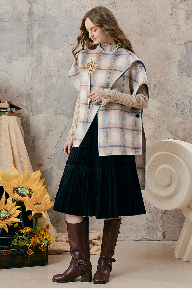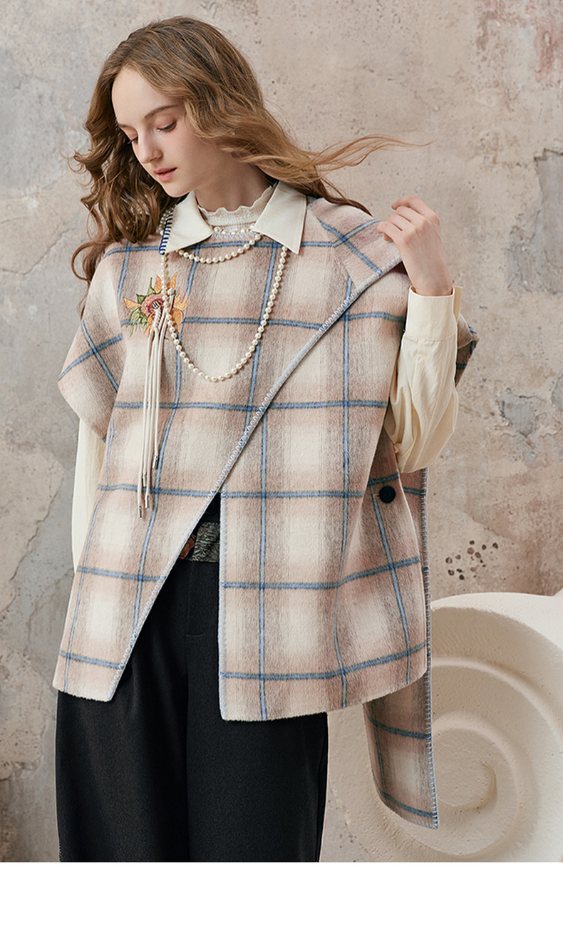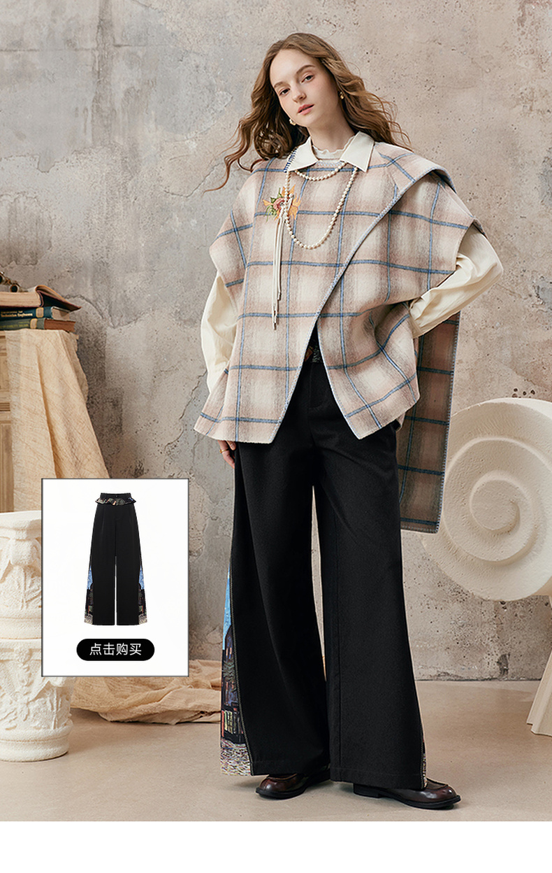 【暖冬内购】两三事梵高文艺永夜微光2025秋冬新款向日葵绣花格子双面呢外套女
