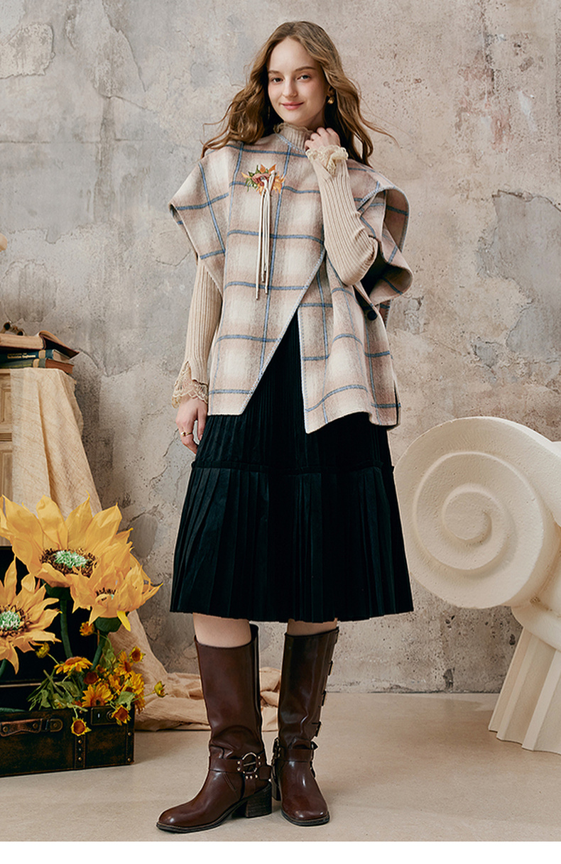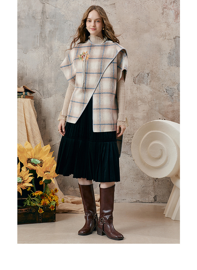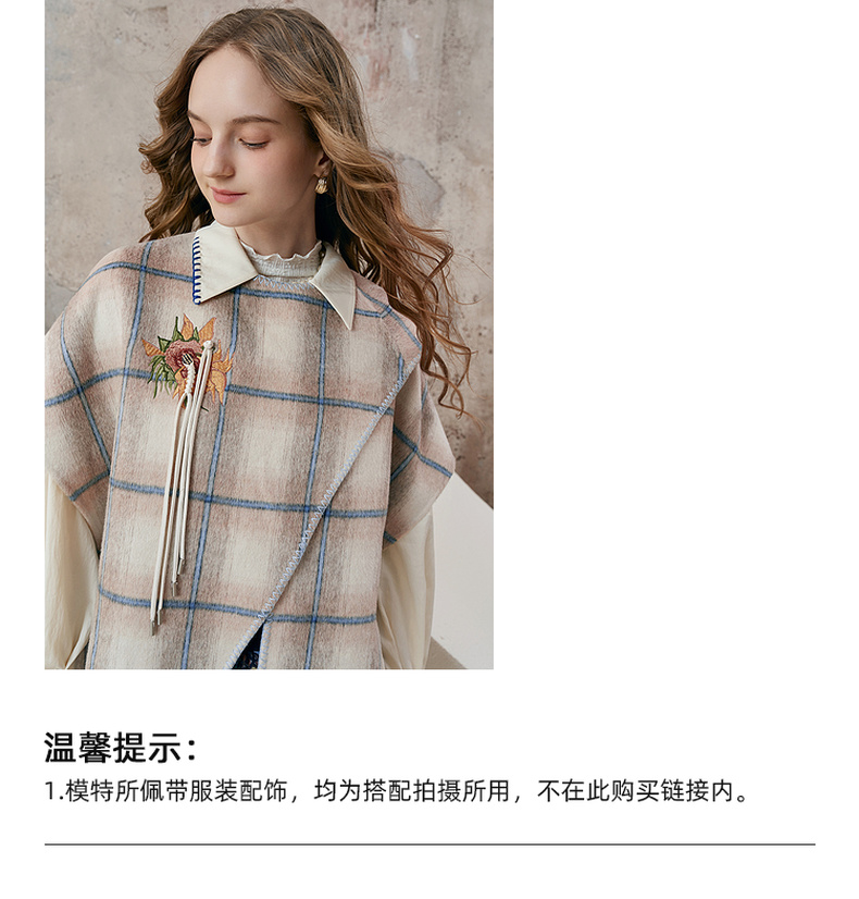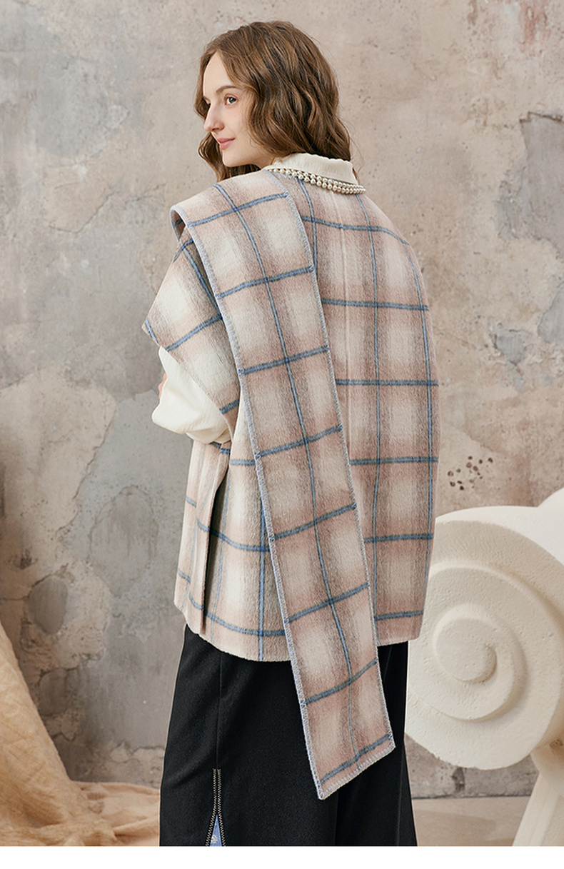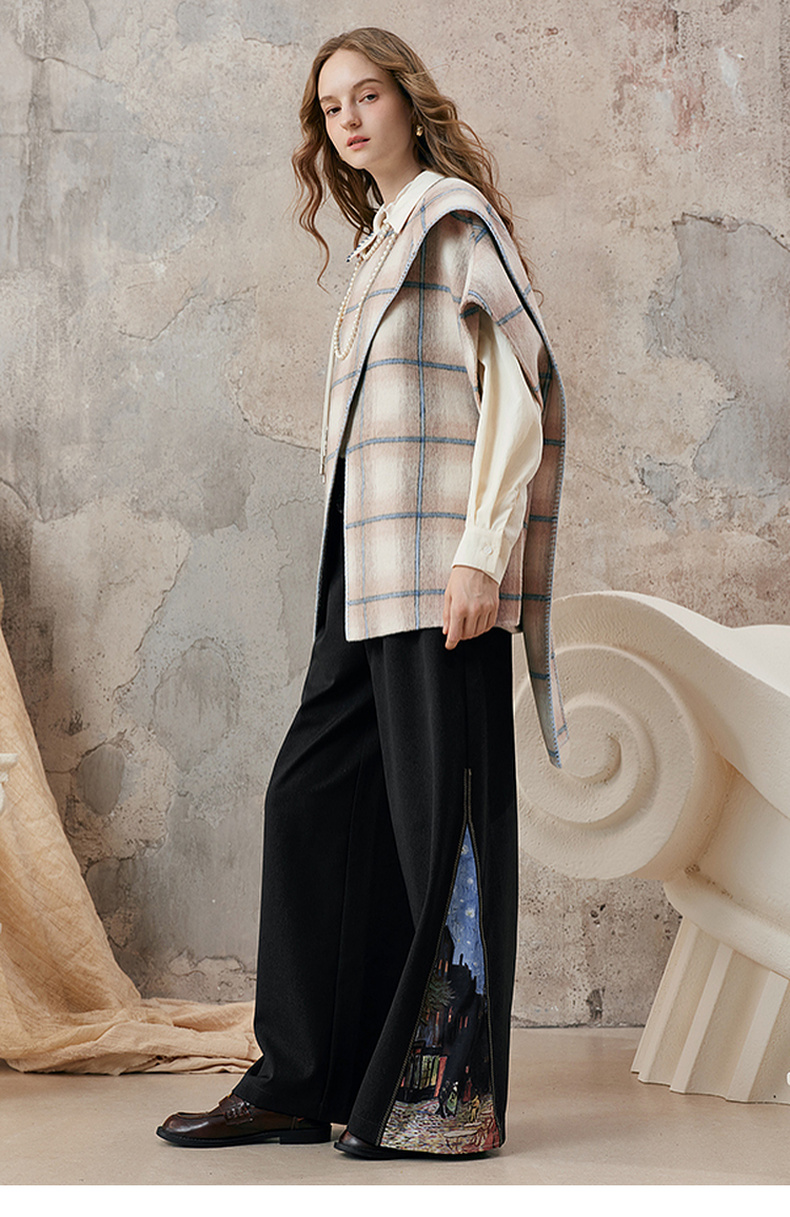 【暖冬内购】两三事梵高文艺永夜微光2025秋冬新款向日葵绣花格子双面呢外套女