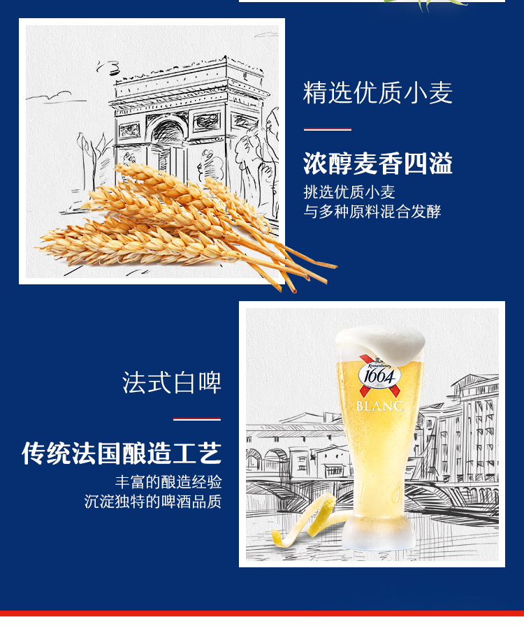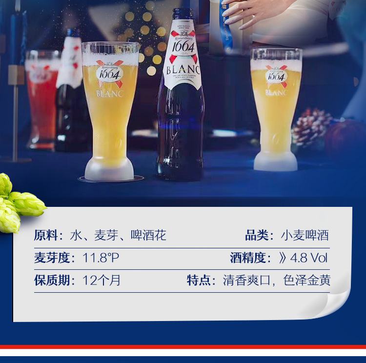 【部分地区缺货预售,现货48h发货】1664白啤218ml*24瓶啤酒