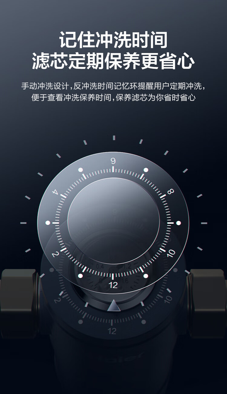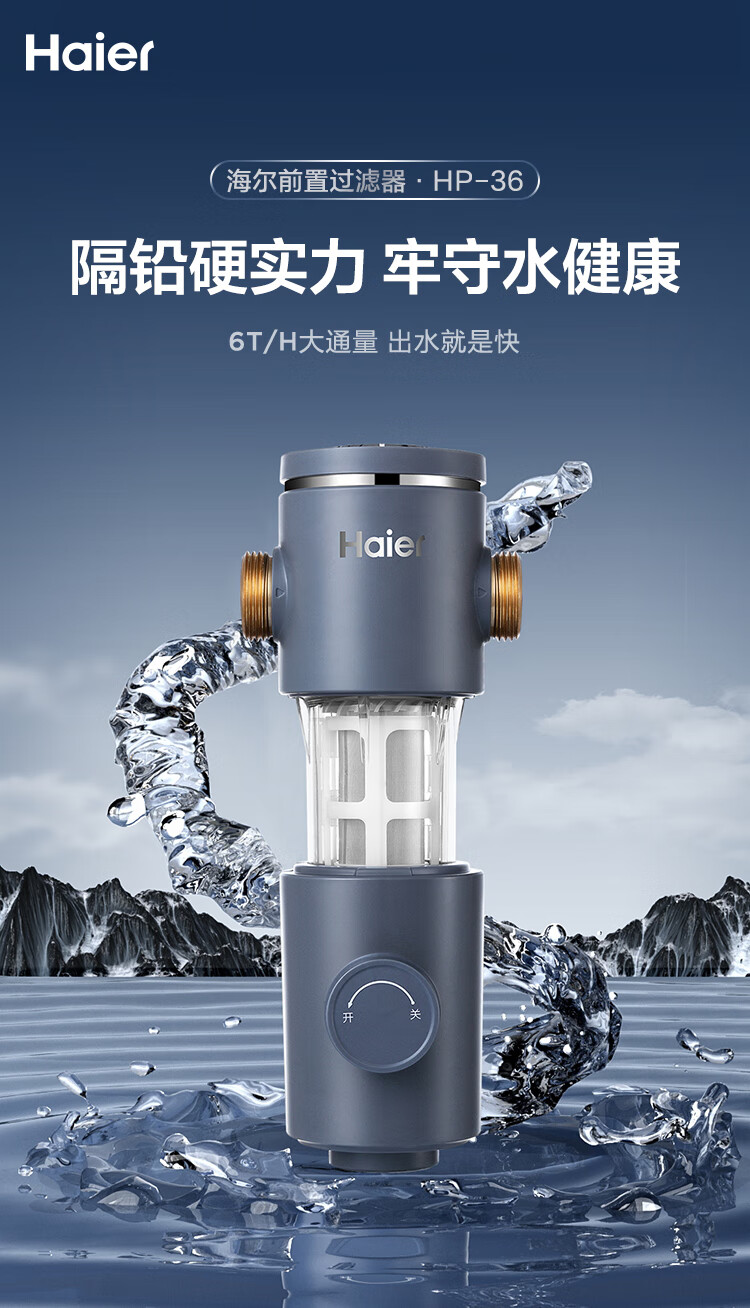 海尔前置过滤器6T大通量家用净水器40微米反冲洗精滤实时水压监测全屋净水HP-36