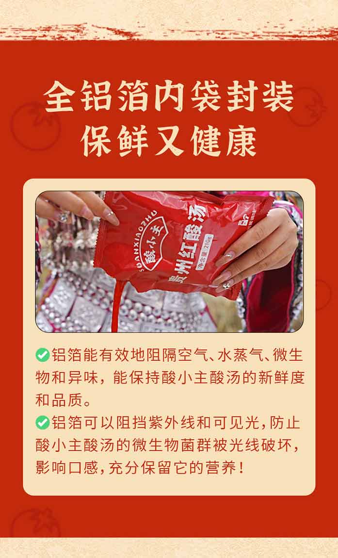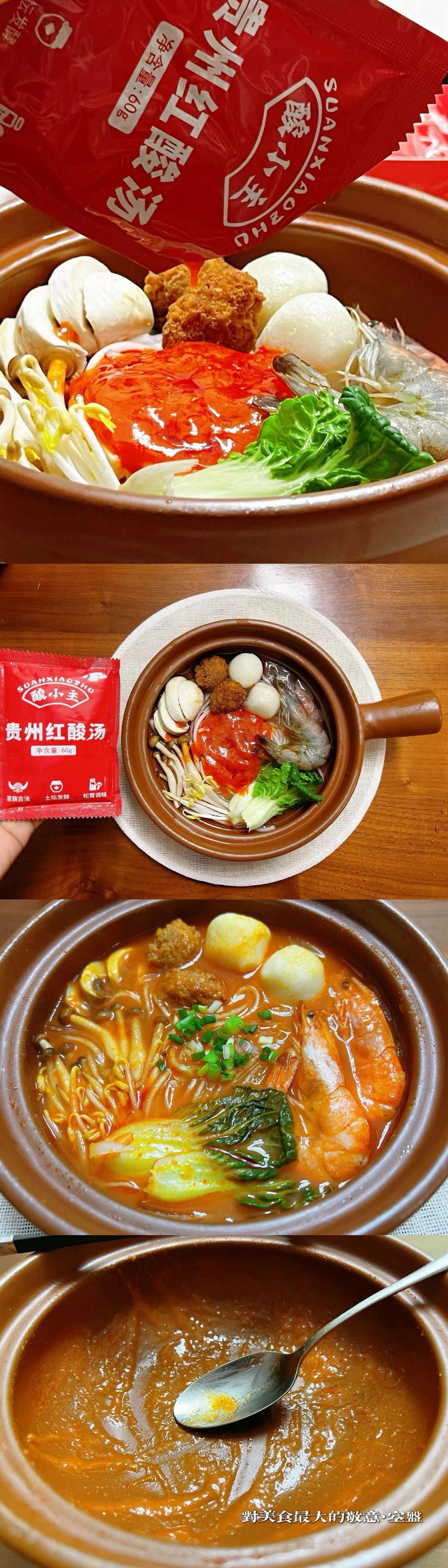 【地道美食丨酸小主·贵州凯里红酸汤】甄选优质新鲜的食材,经苗族古法制酸工艺土坛自然发酵,辣椒的醇厚与番茄的清新完美融合,再加上灵魂木姜子造就了独特的酸小主红酸汤,无论是煮火锅还是做汤煮面都好吃