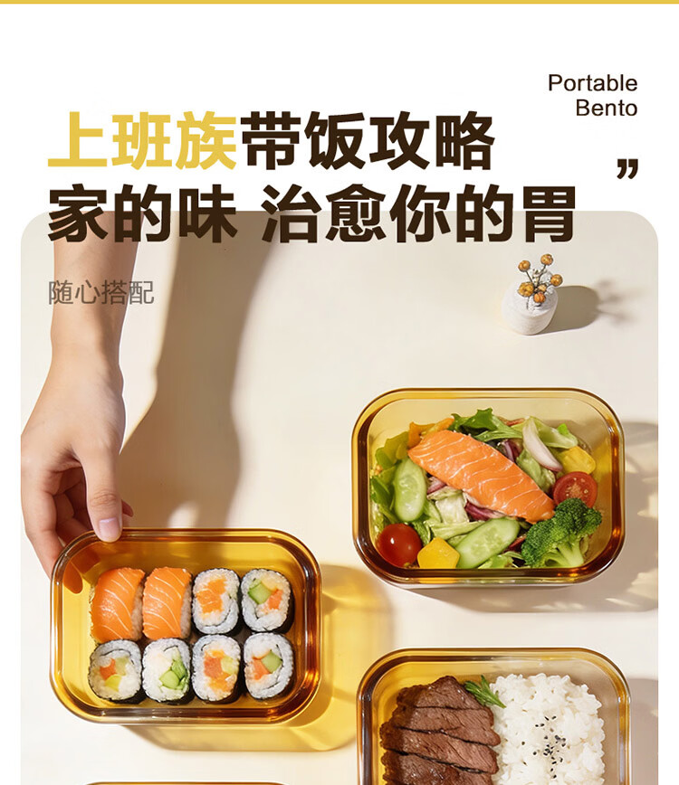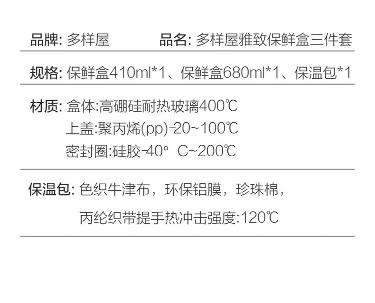 【多样屋专柜】多样屋雅致保鲜盒三件套上班族可微波炉饭盒