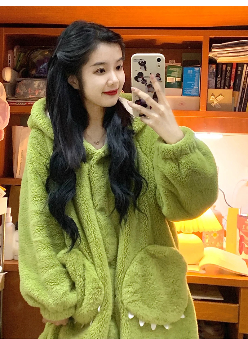 2024新款珊瑚绒睡衣女毛绒家居服冬季加厚加绒睡袍女秋冬长款浴袍