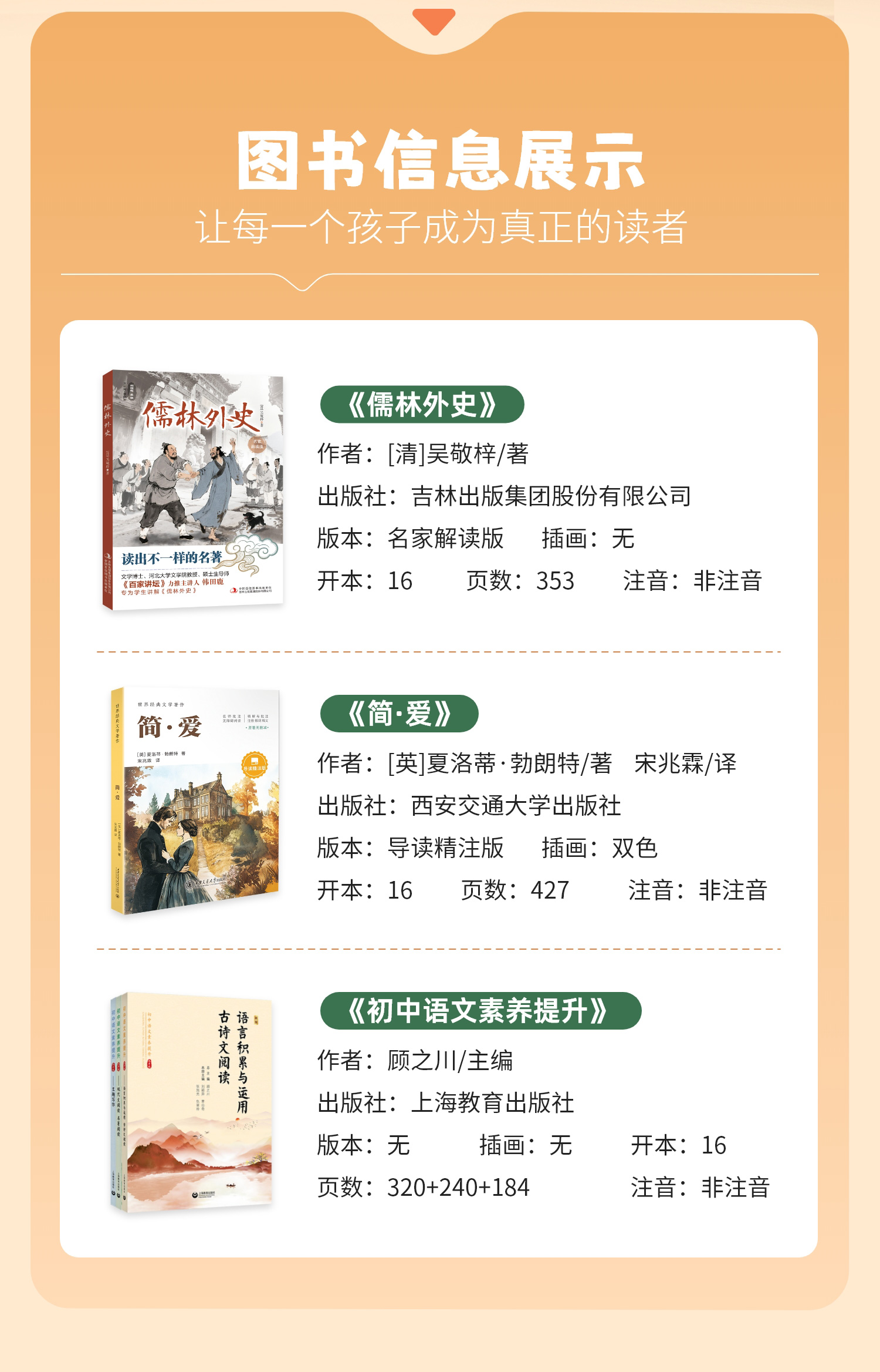 班班26寒九年级【书目】《儒林外史》《简爱》《初中语文素养提升》 赠导读单