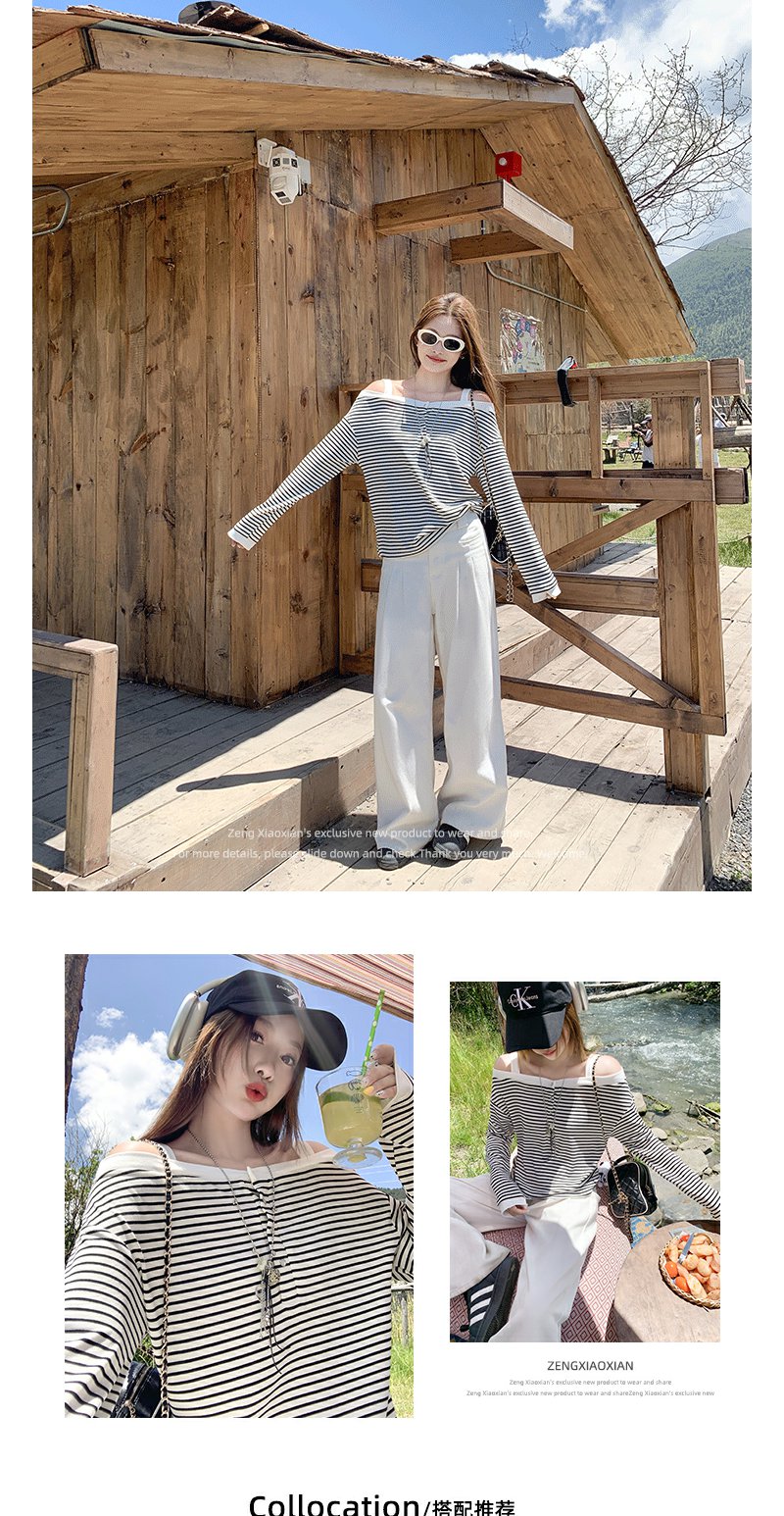 <曾小咸推荐>3.21现货秒杀 !微信超特价!韩系一字肩条纹长袖T恤 日常149.99 立减90 秒杀59.99!!
