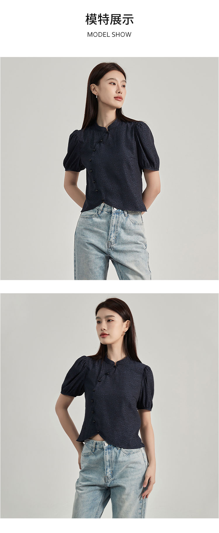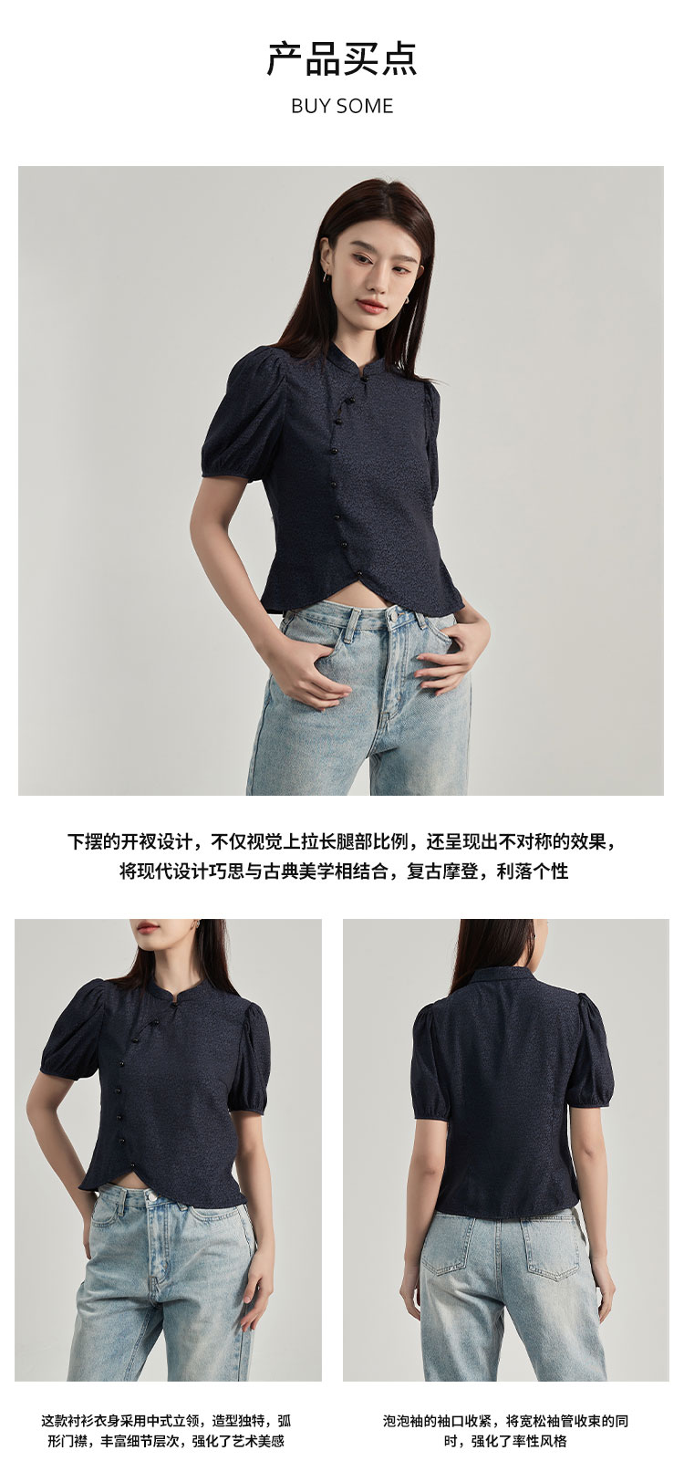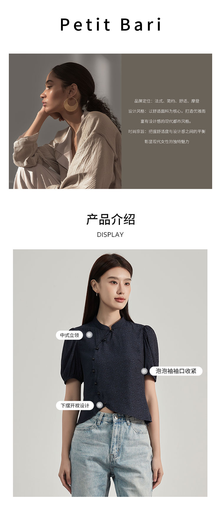 【2件9折】【Petit Bari】新中式美学灯笼短袖衬衫立领休闲