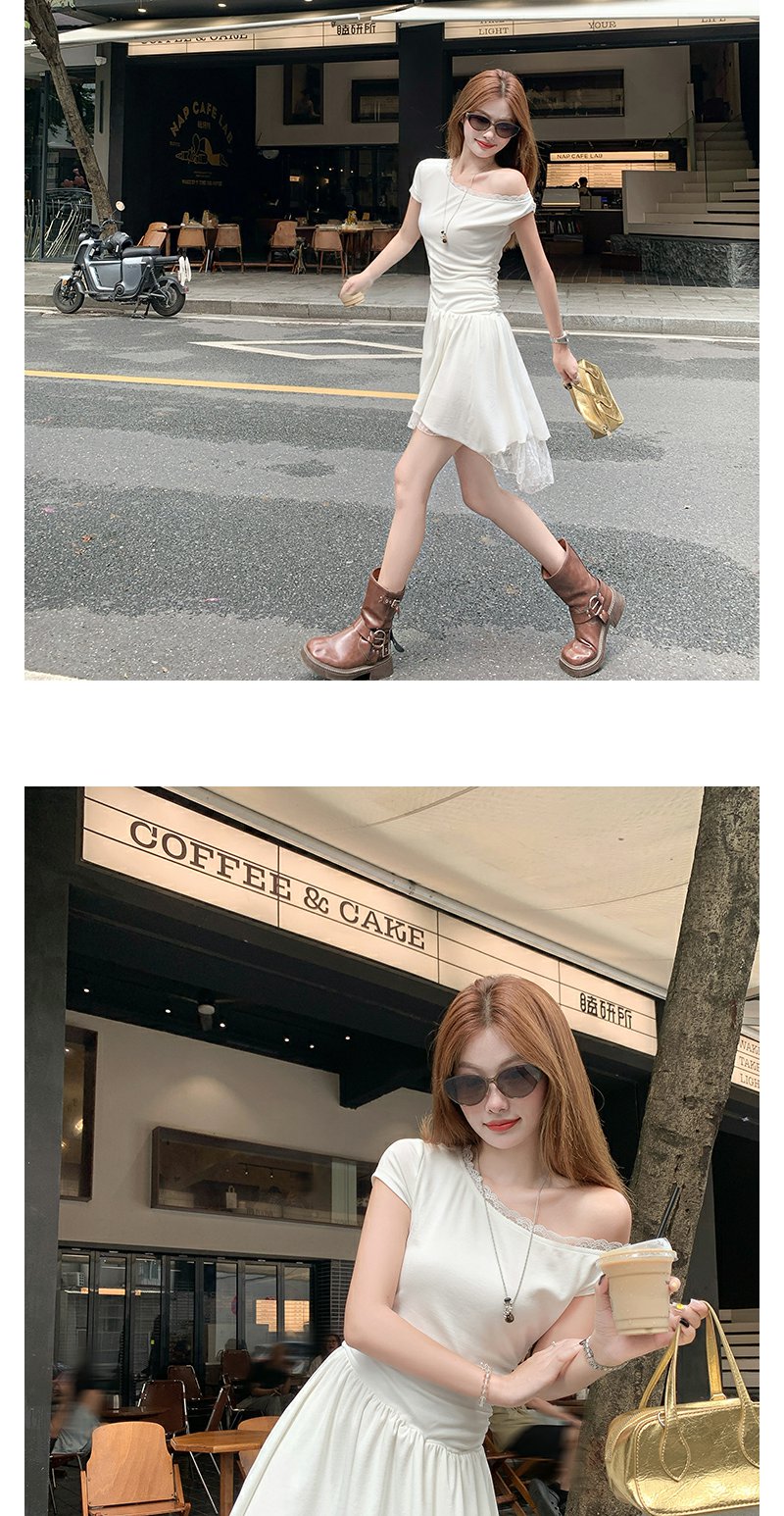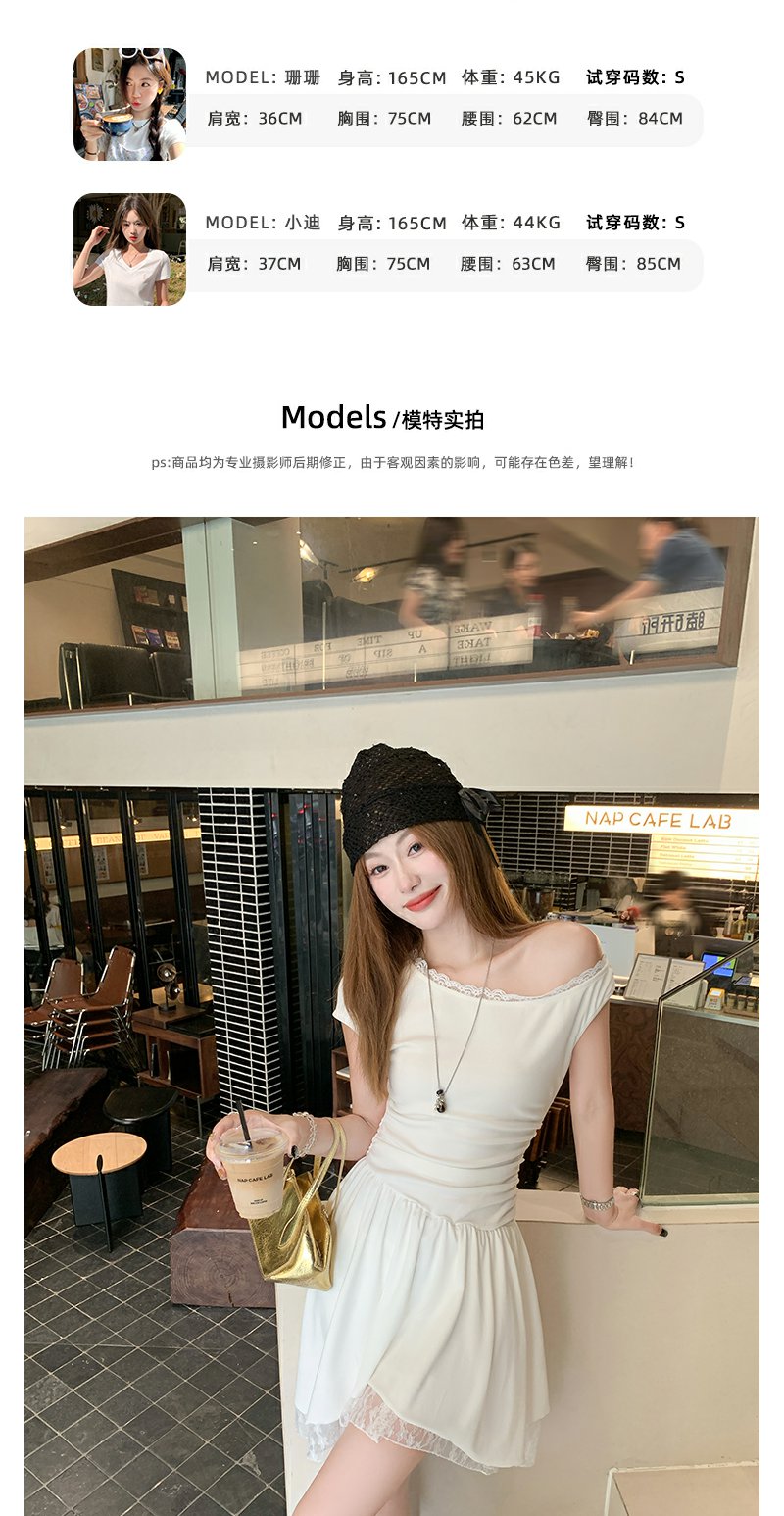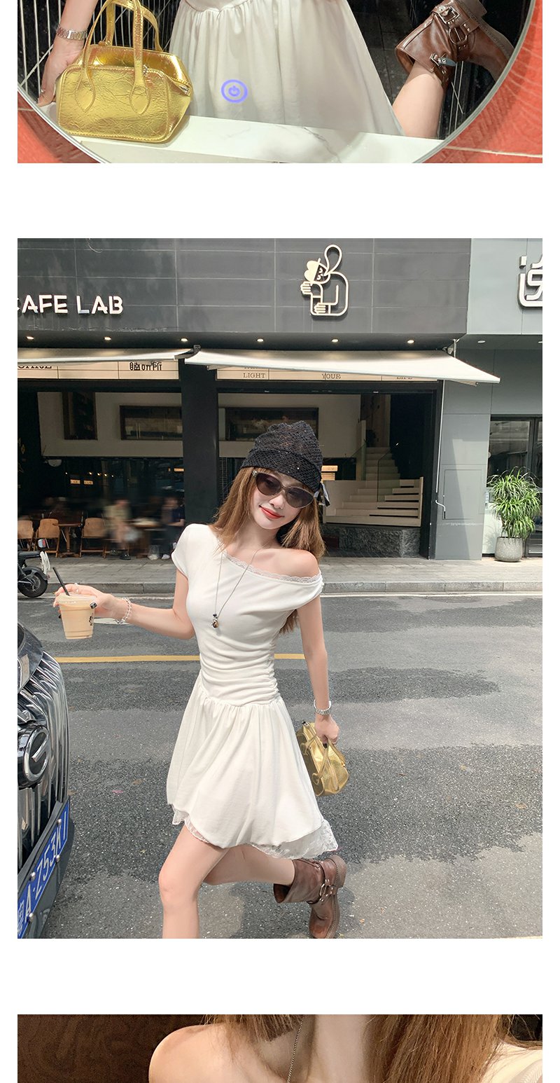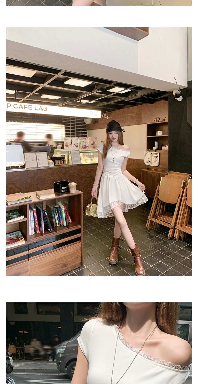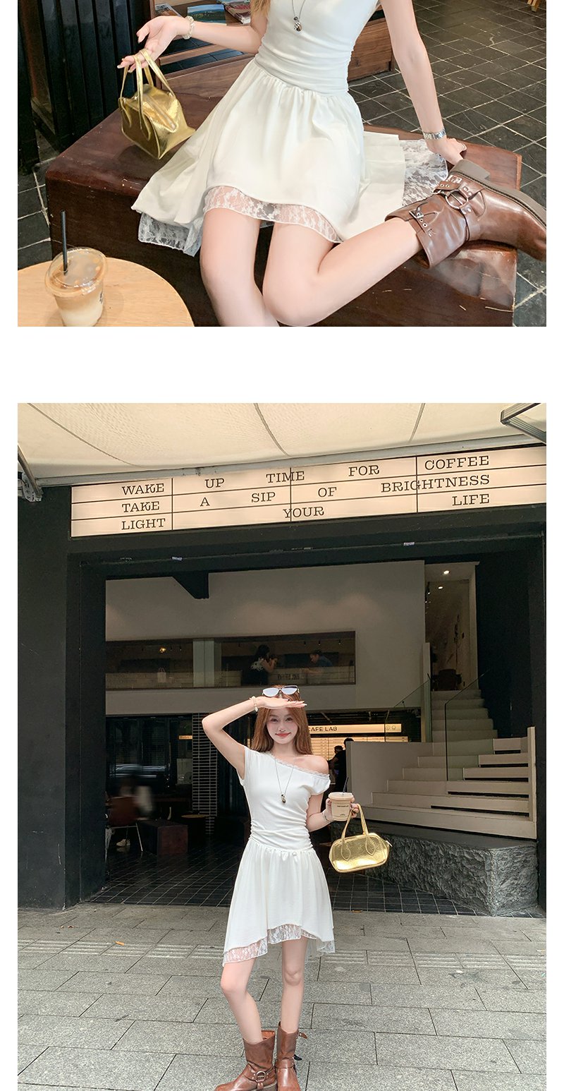 【折后再享2件88折】现货秒杀!微信打折价!斜肩拼接蕾丝花边连衣裙 日常199.99/件 立减90 秒杀109.99/件!!