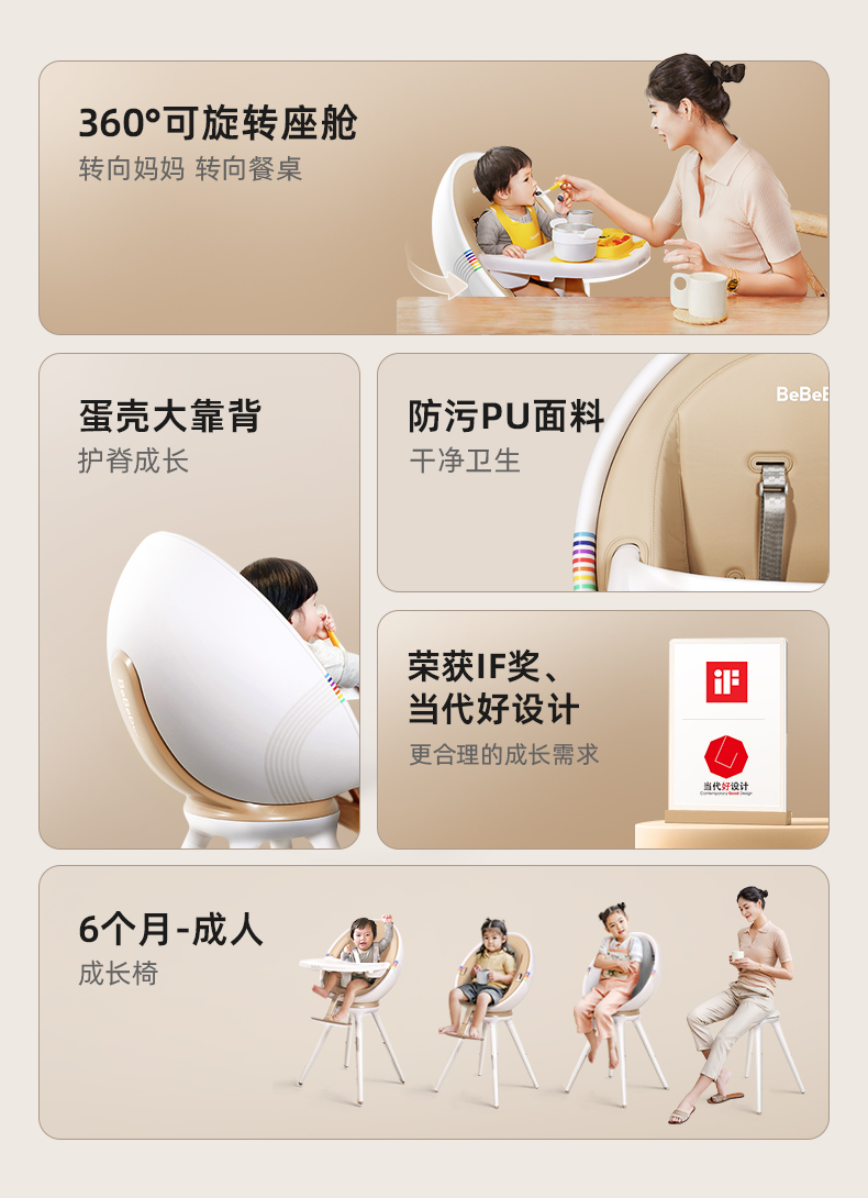BeBeBus成长家 宝宝餐椅360度旋转多功能儿童餐椅(适用6个月~成人)