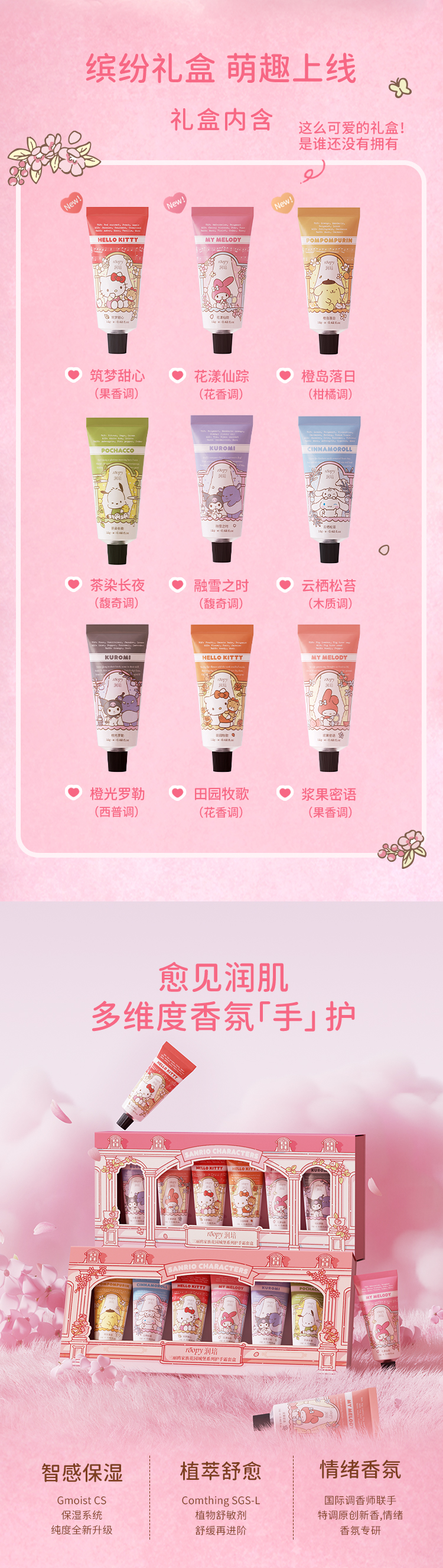 秒杀🔥𝟑𝟗.𝟗🉐𝟔支【润培✖️三丽鸥】25年新款护手霜 A/B两款礼盒🎁多款新香可选~下单加赠礼袋🛍