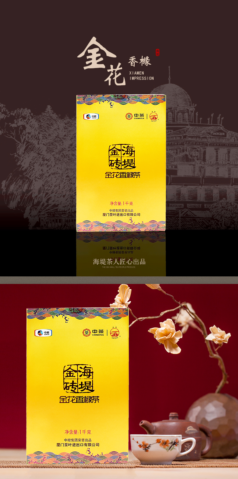 中茶 海堤茶叶官方旗舰店 金花香橼 乌龙茶发花茶砖 一公斤装
