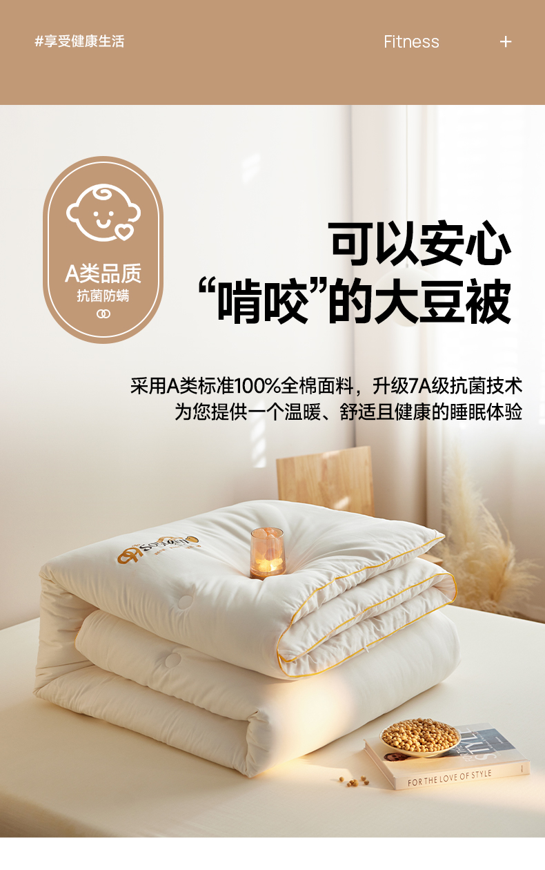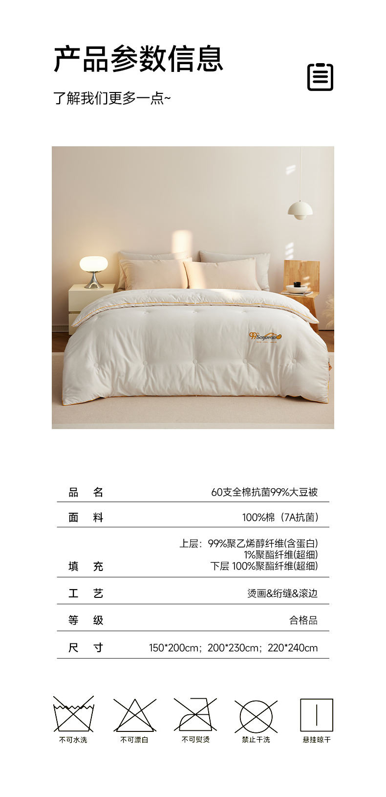 自然醒60支7A全棉抗菌99%大豆纤维被子被芯A类四季通用加厚保暖冬被春秋被LFS