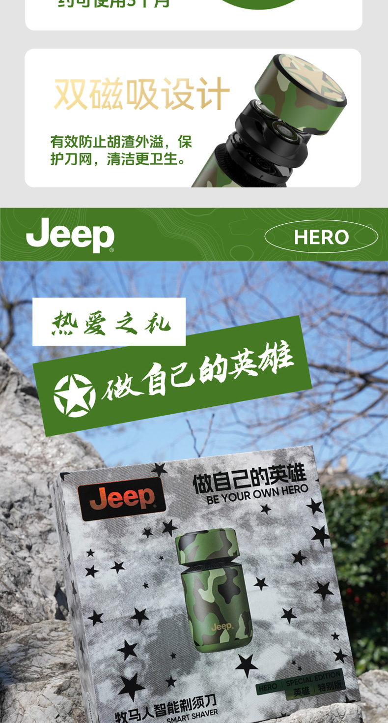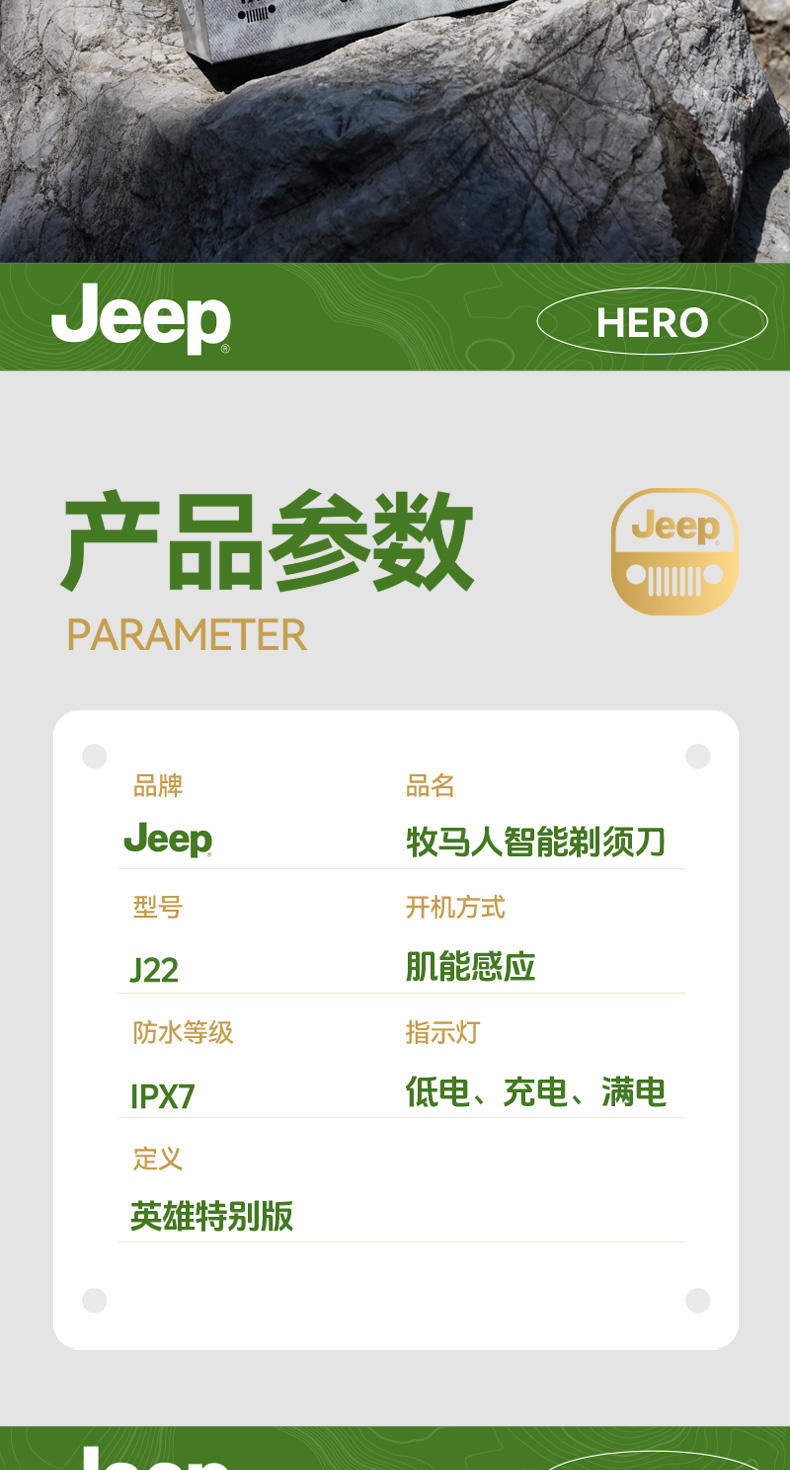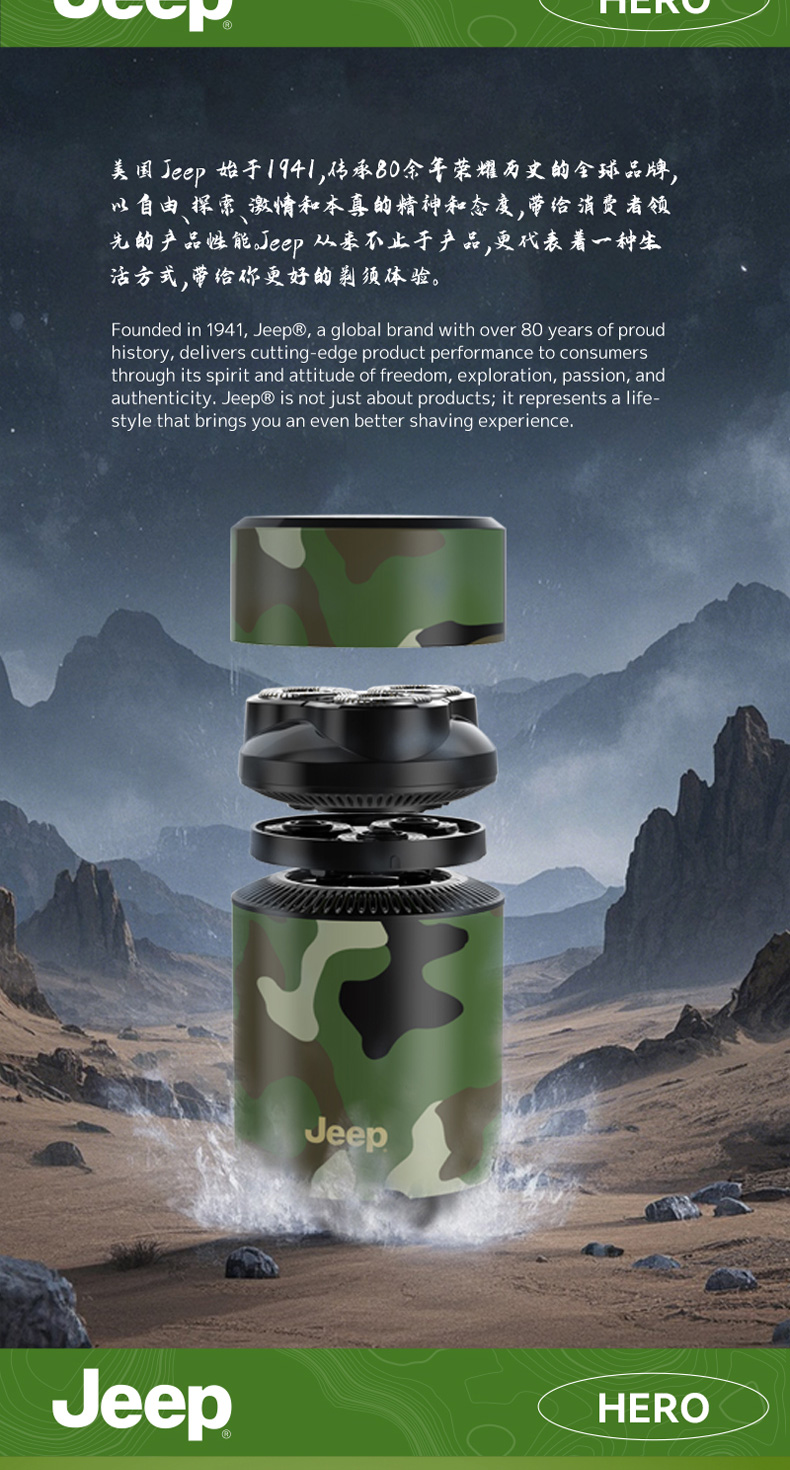 【自营】JEEP美国吉普智能剃须刀便携式 男士电动刮胡刀mini三刀头旋转式全身水洗感应剃须七夕节礼物送 Jeep剃须刀J22 英雄款