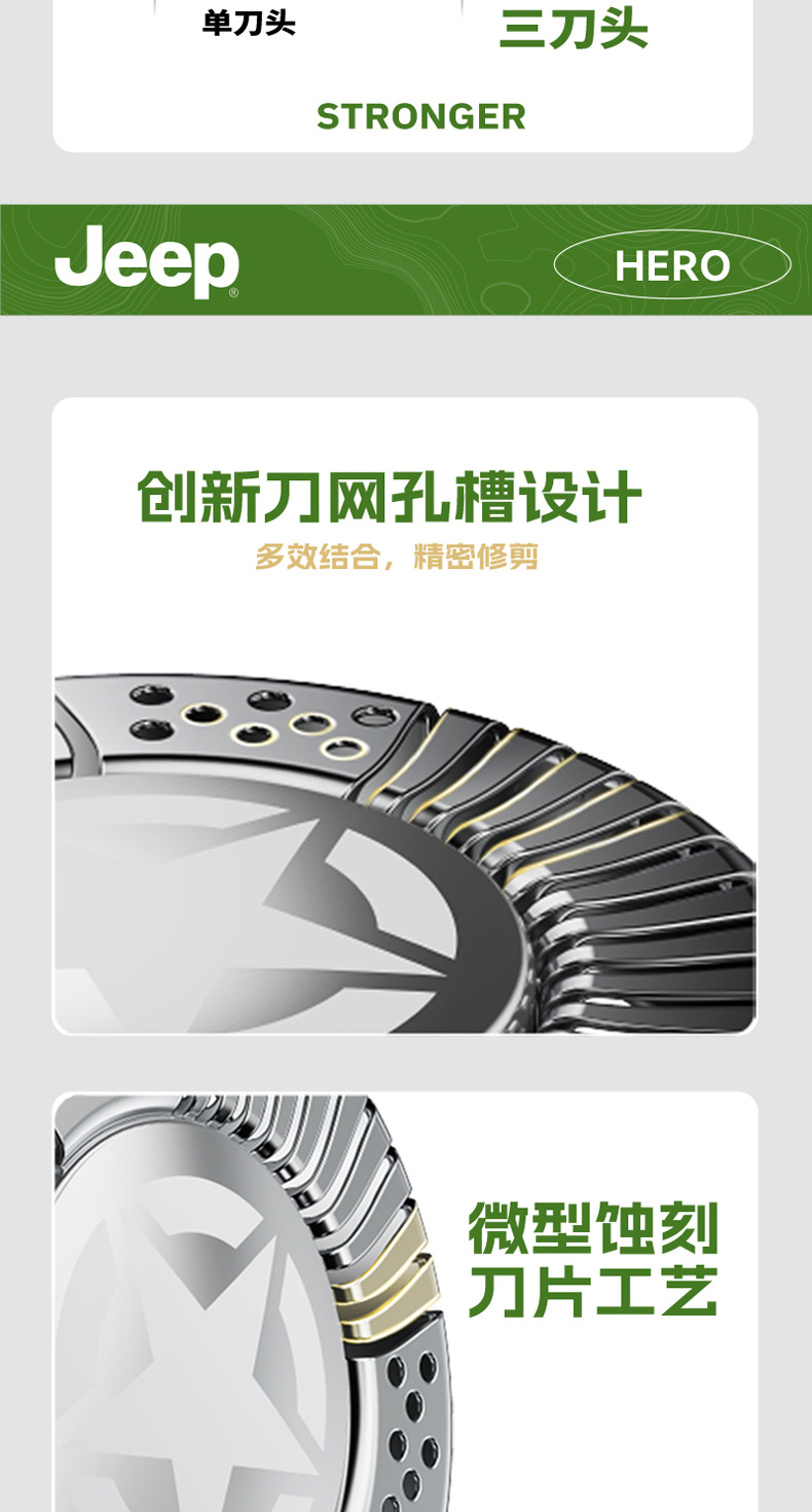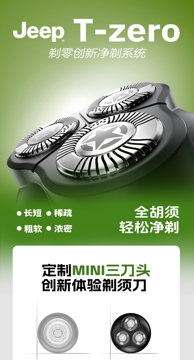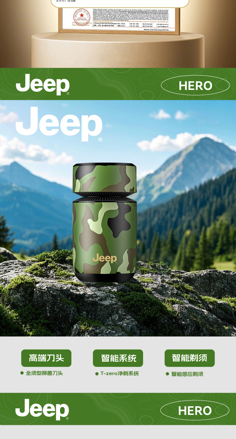 【自营】JEEP美国吉普智能剃须刀便携式 男士电动刮胡刀mini三刀头旋转式全身水洗感应剃须七夕节礼物送 Jeep剃须刀J22 英雄款