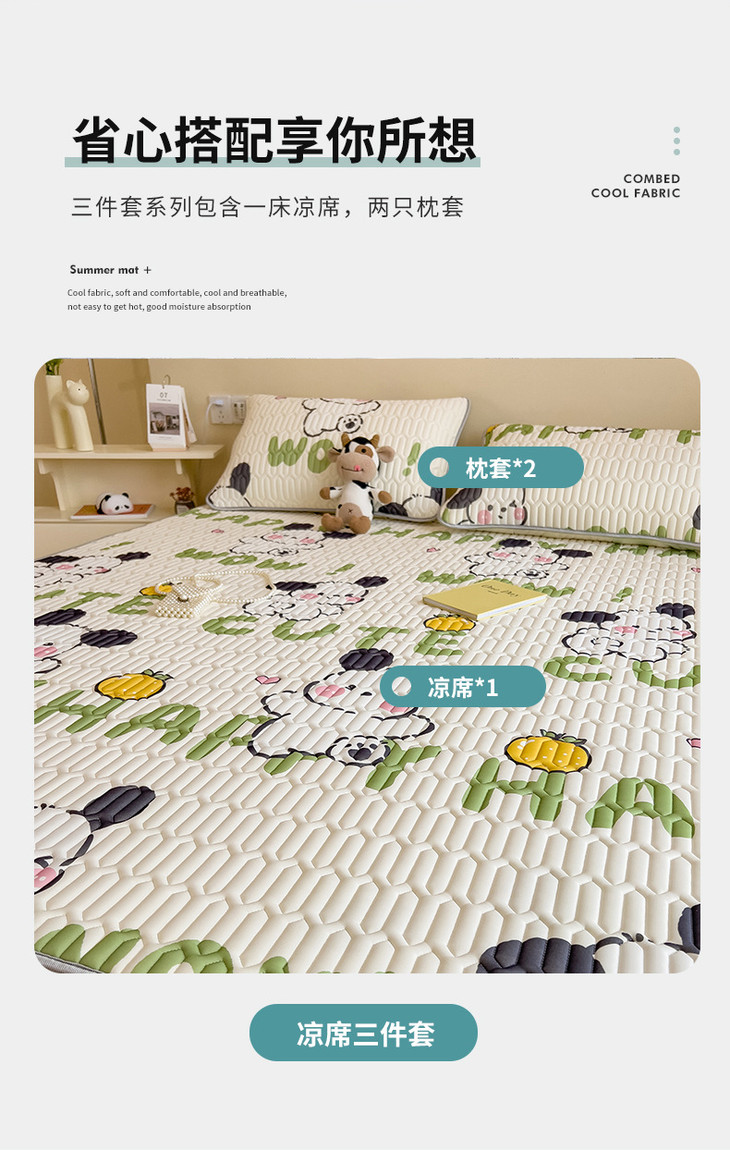 【乳胶凉席三件套】夏天凉感床单夏季可水洗单人空调席子凉垫