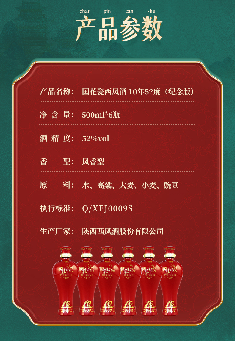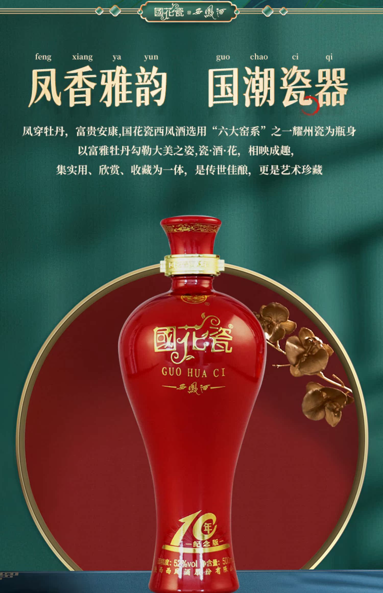 国花瓷西凤酒10年纪念版52度500ml*1瓶