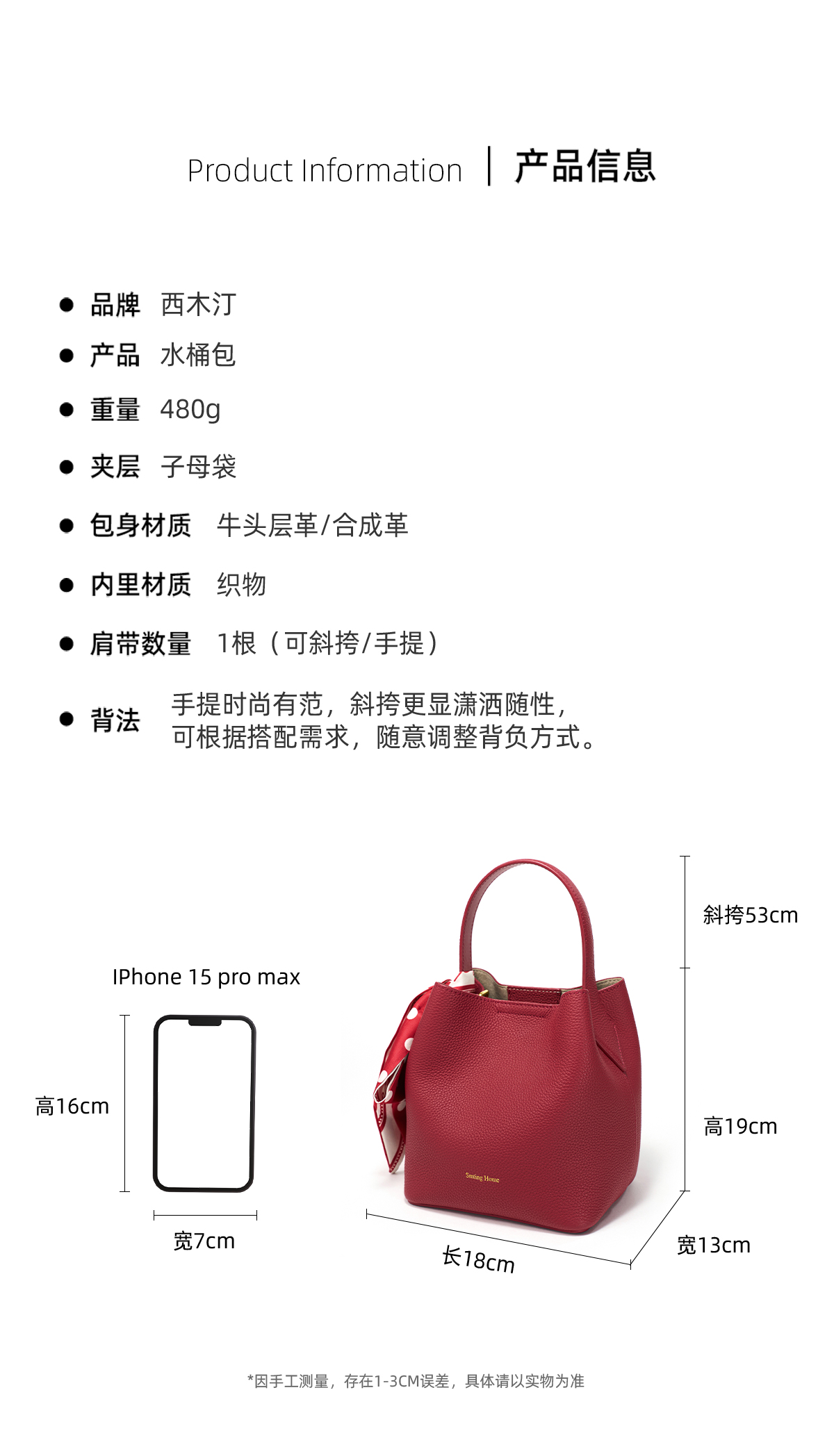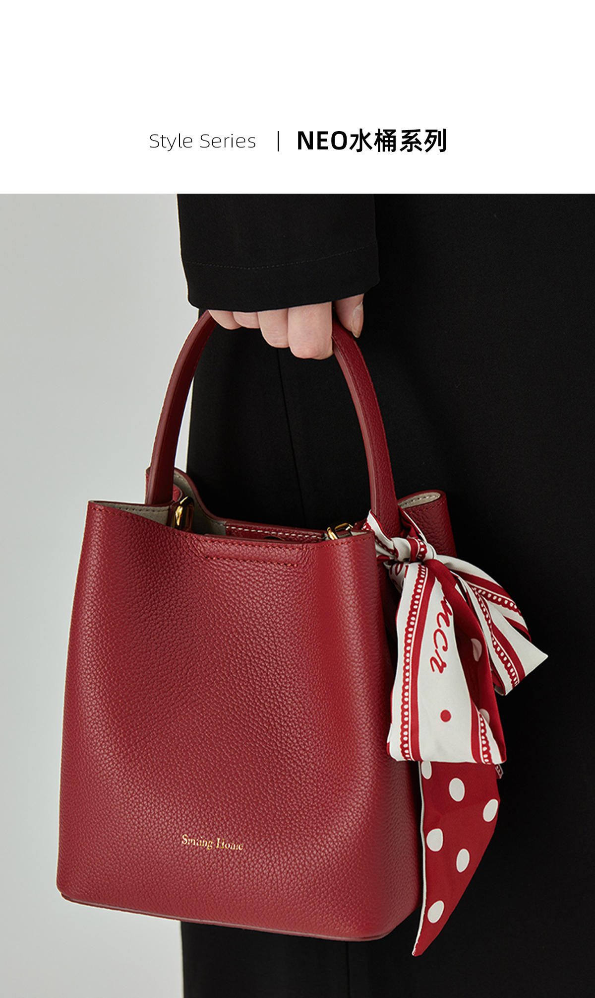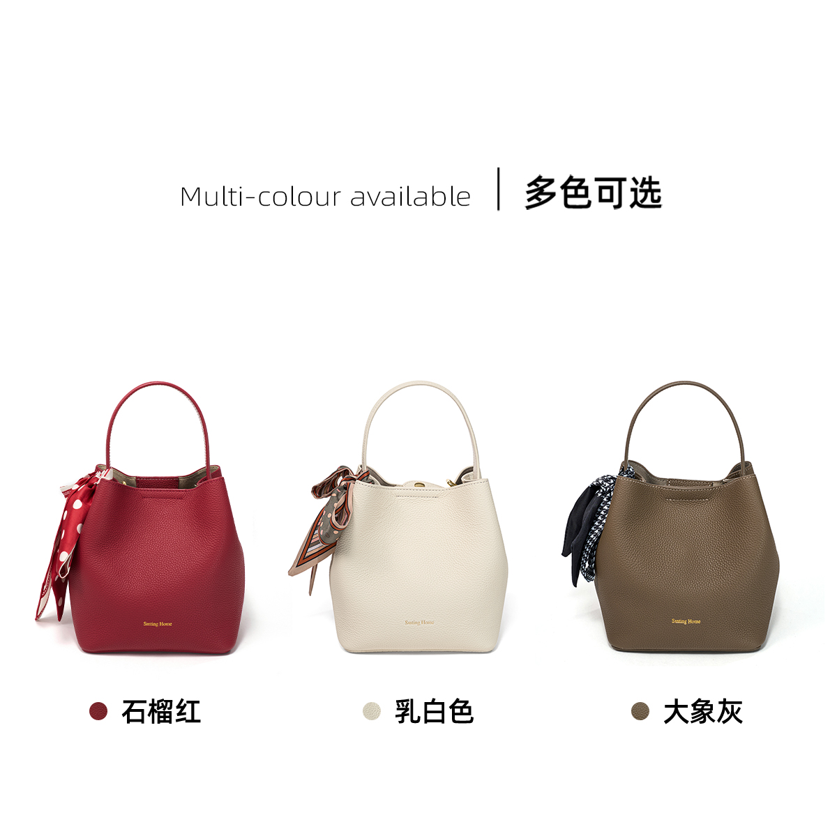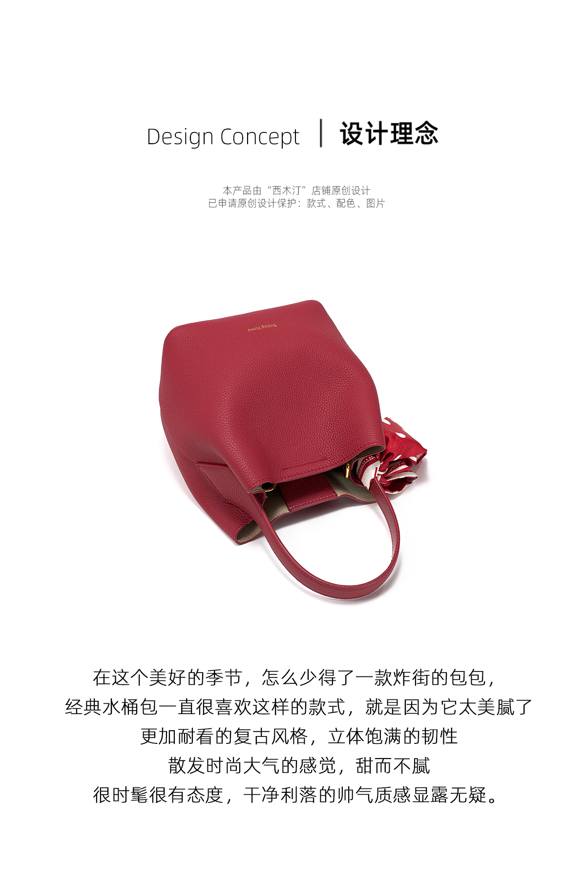 96561【柔见定制专属】西木汀 时光情怀 牛皮手提水桶包女斜挎包小众单肩女包