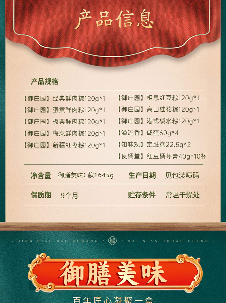 御庄园·御膳美味C款1645g(8粽+4蛋+糕点+10杯龟苓膏) 【端午】LP