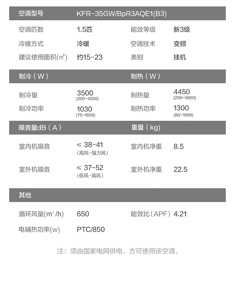 奥克斯空调【京裕】大1.5匹新能效挂机KFR-35GW/BpR3AQE1(B3)