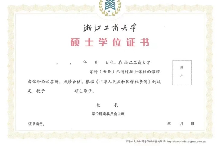 含金量:毕业后发硕士学位证(中国学信网可查,下面以浙江工商大学为例)