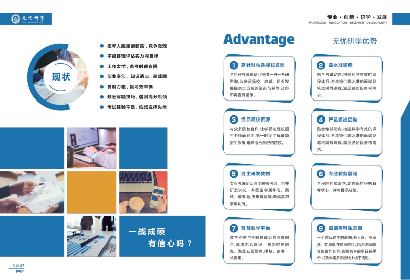 在教学方面,有着最前沿的师资力量,有从业近20年的专业指导老师,熟知国家与各高校读研政策,为广大学员前期的答疑解惑后期的跟踪服务管理提供了大力支持。