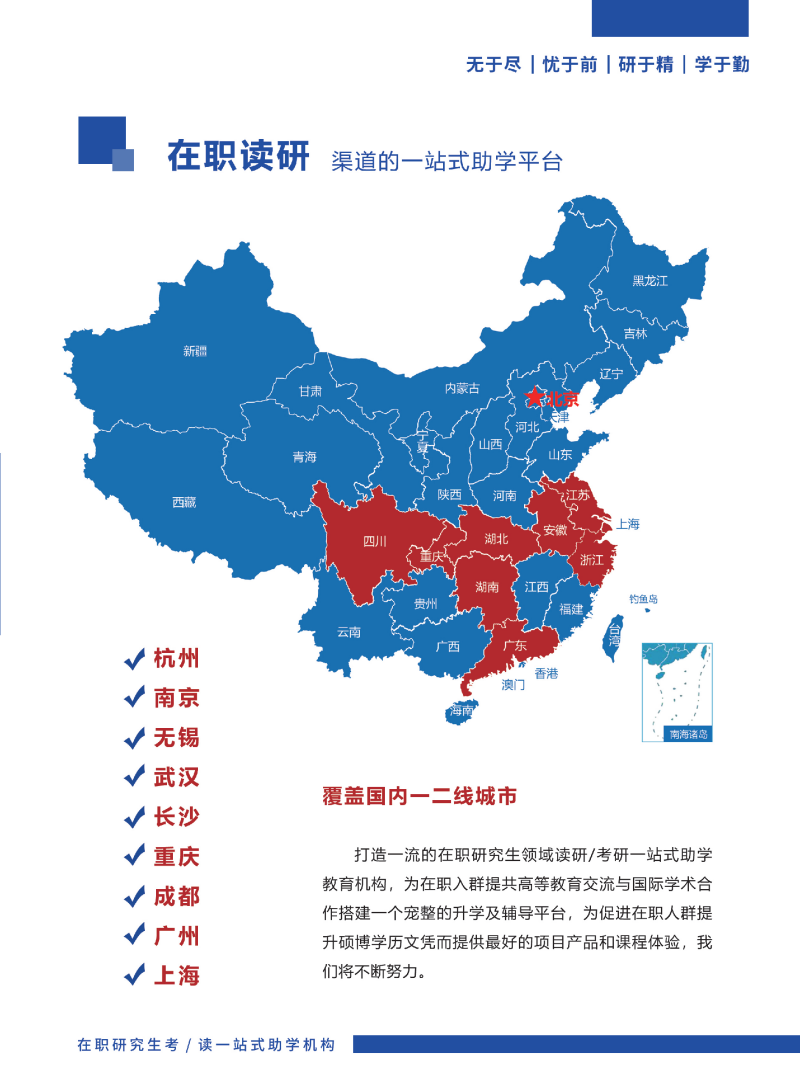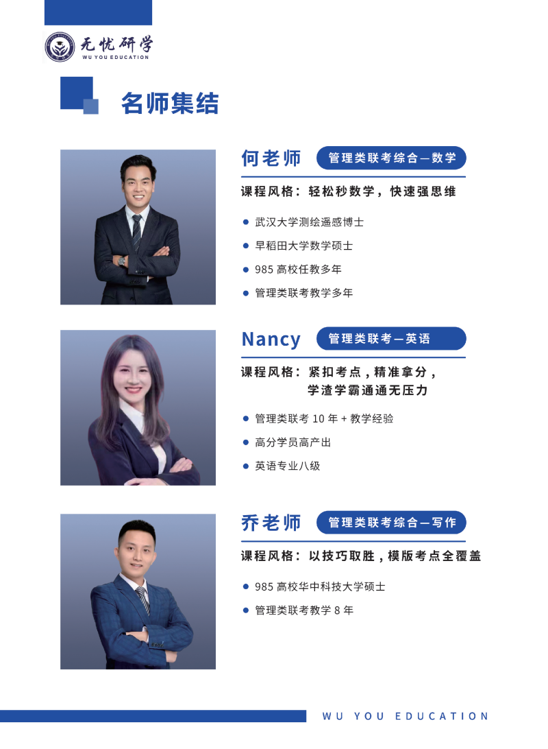 无忧研学教育集团创办于2018年,致力于管理类联考辅导,高校同等学力申硕,国际硕士等为一体的综合教育服务单位,在全国一二线城市均有教学基地。