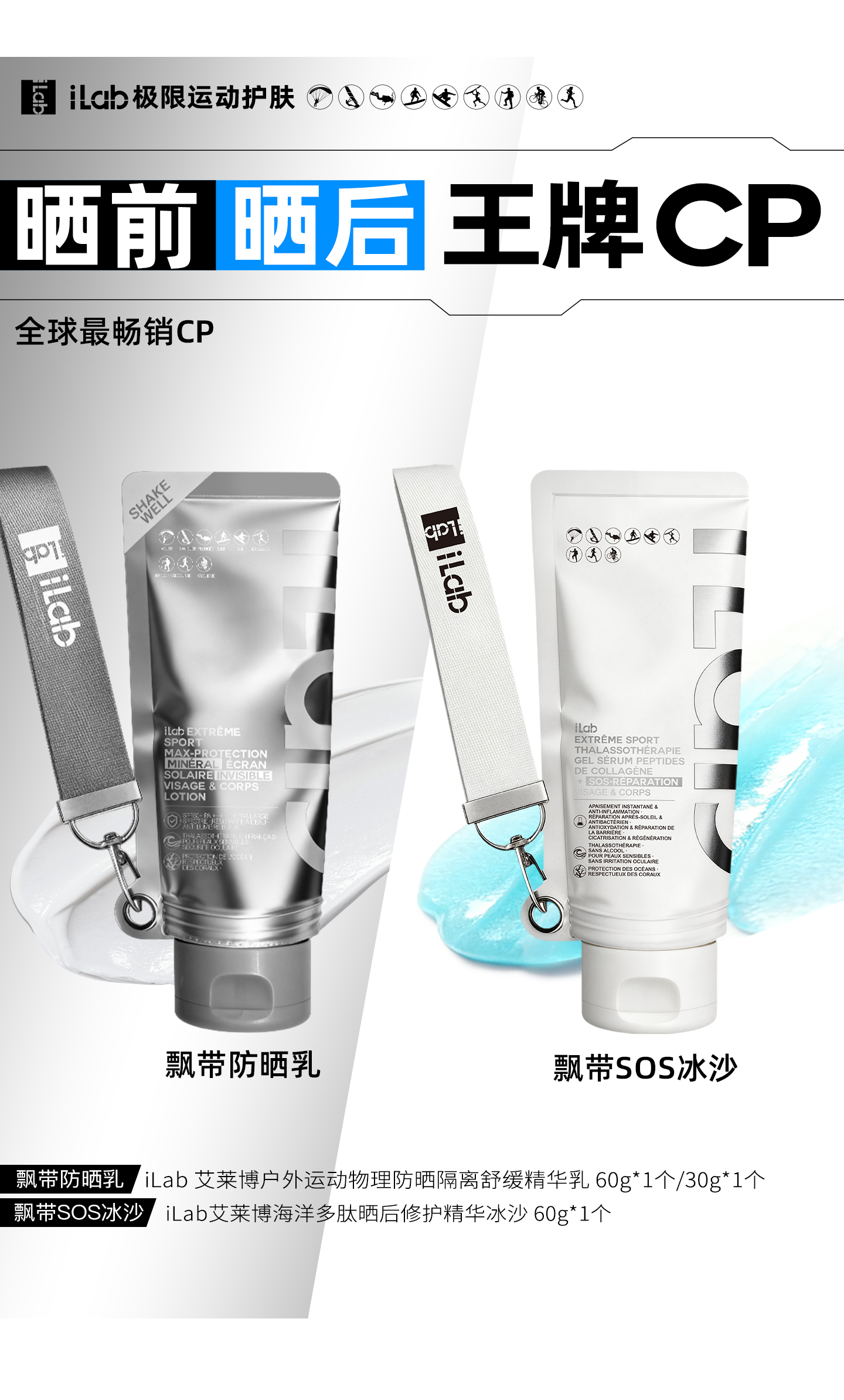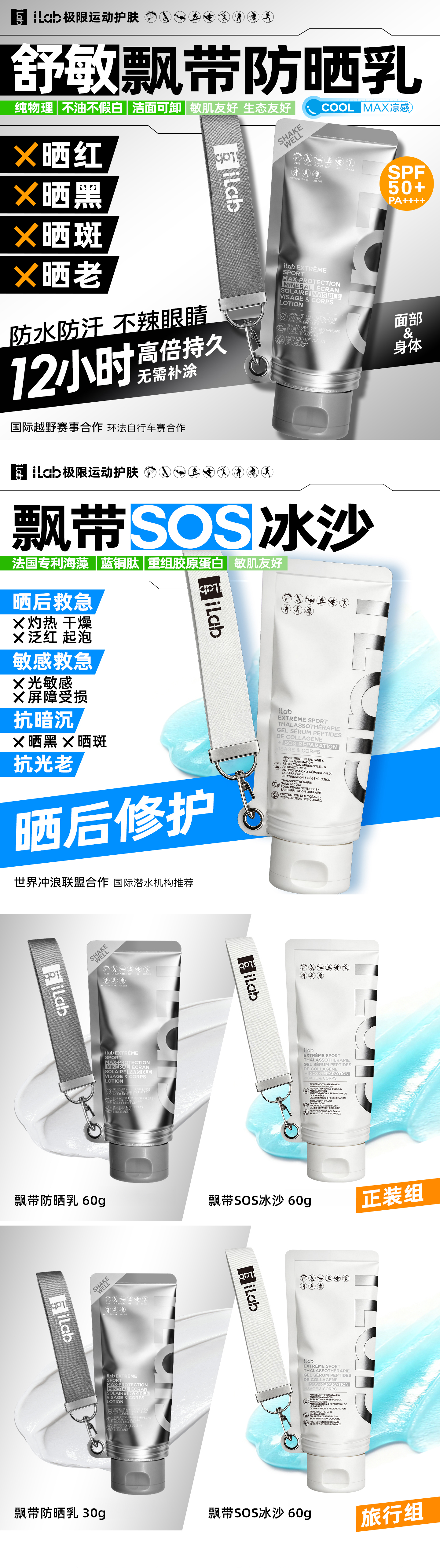 iLab艾莱博晒前晒后(王牌)CP (飘带防晒乳+飘带SOS冰沙)
