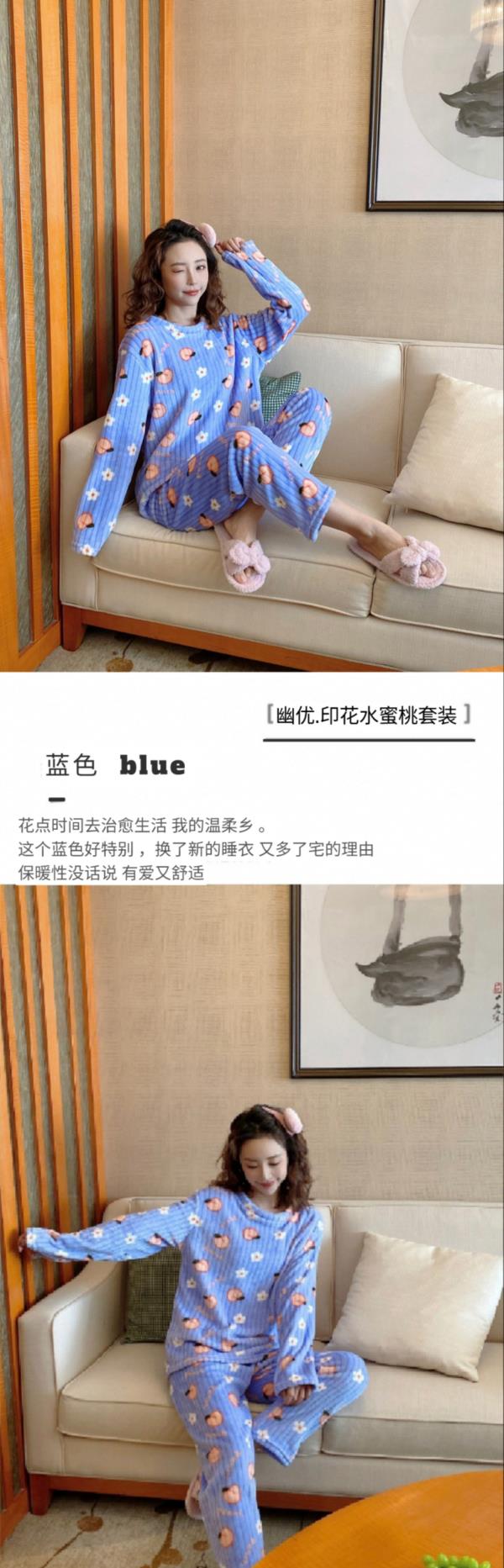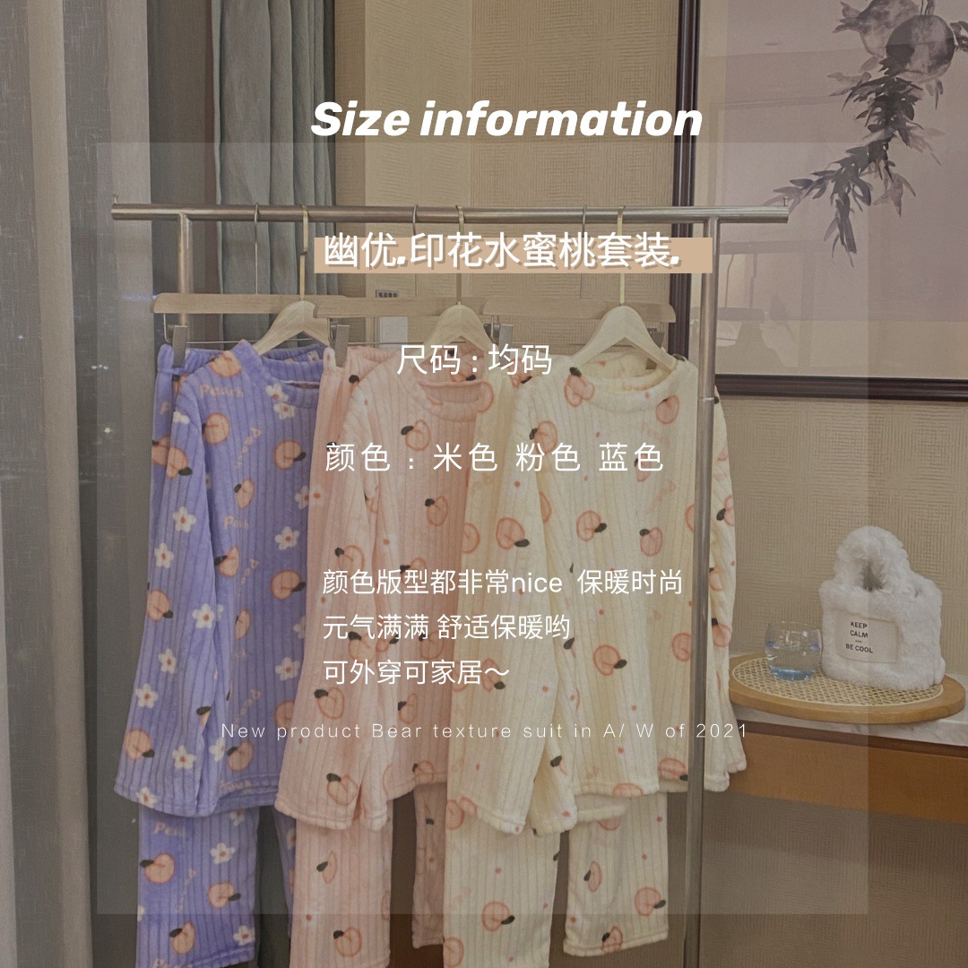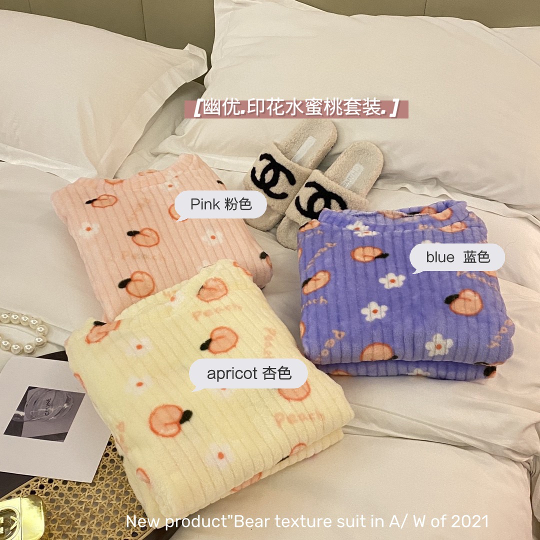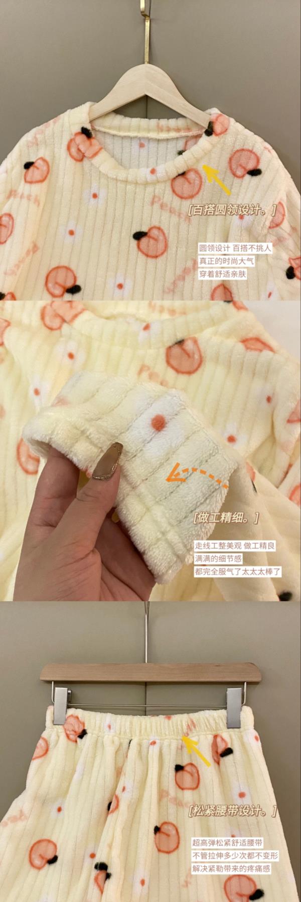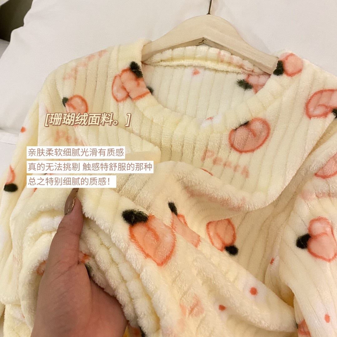 小熊珊瑚绒睡衣套装女秋冬新款圆领舒适柔软水蜜桃保暖家居服新款新品
