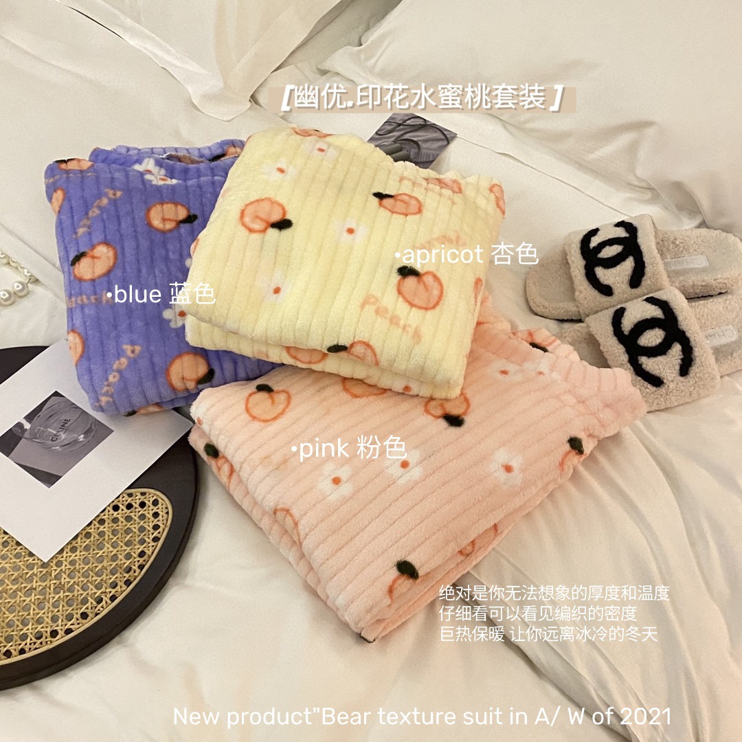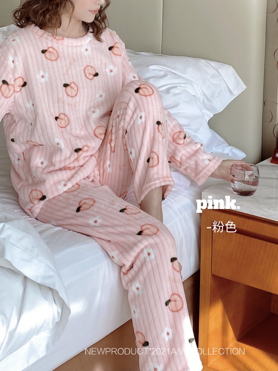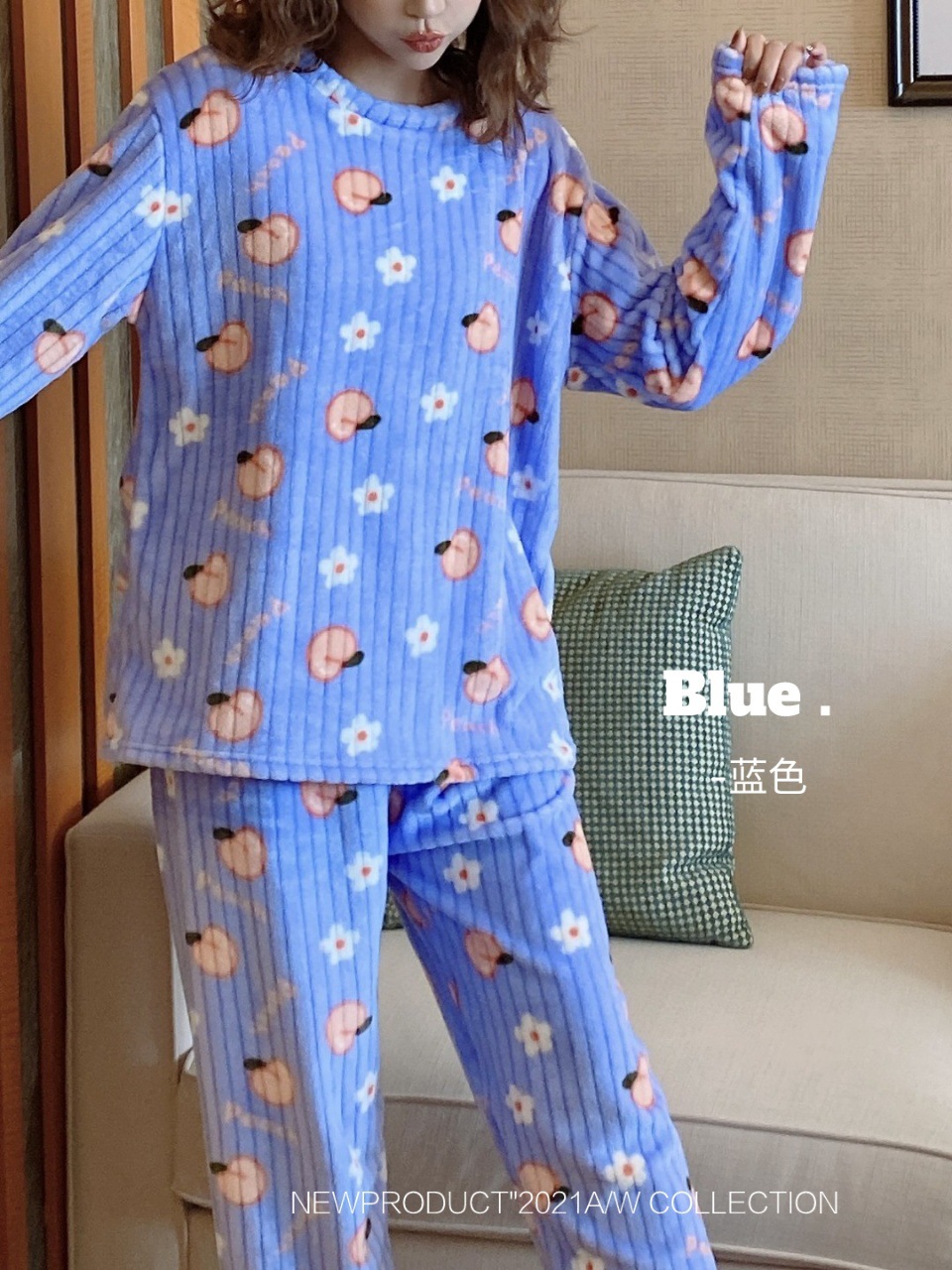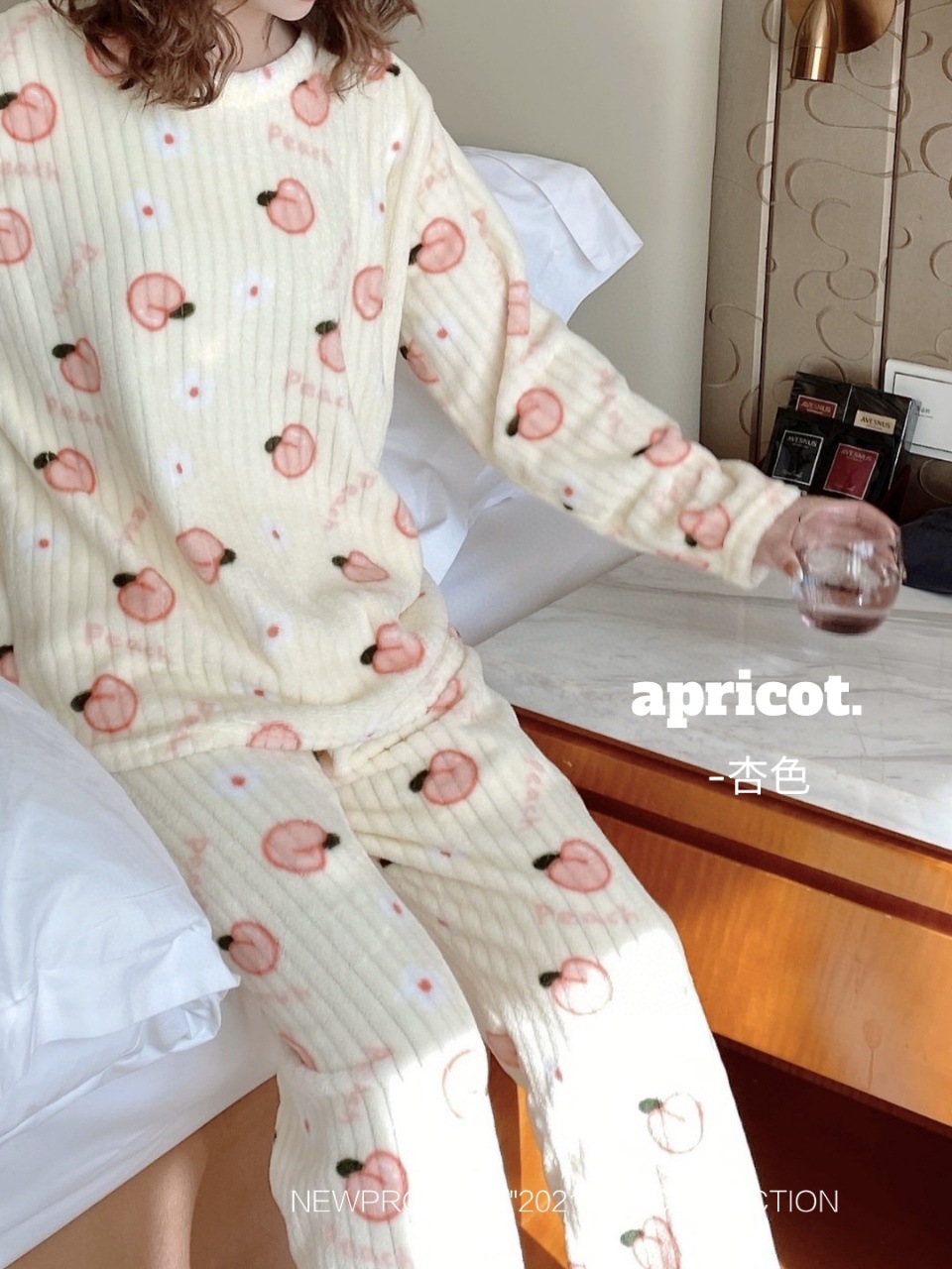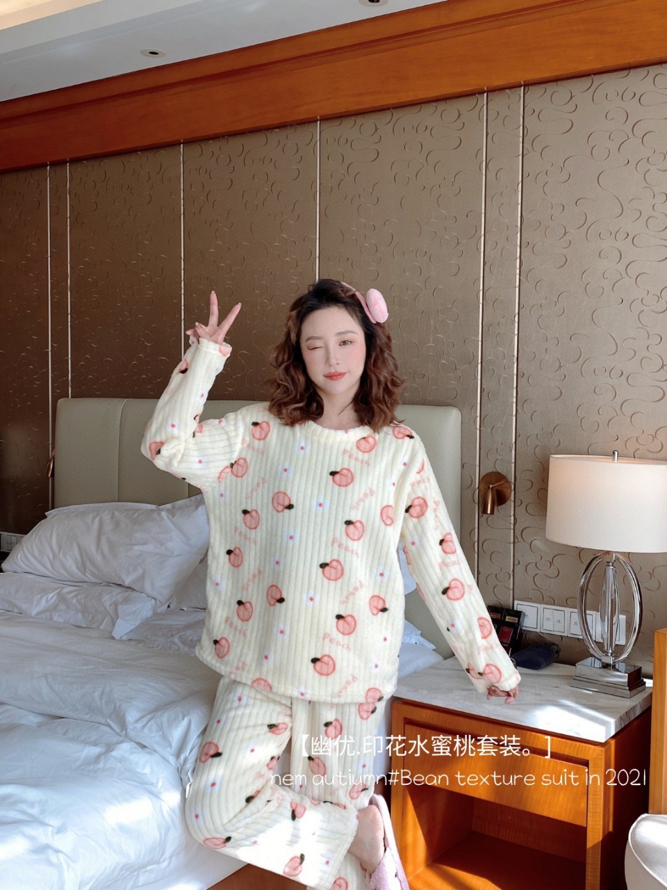 小熊珊瑚绒睡衣套装女秋冬新款圆领舒适柔软水蜜桃保暖家居服新款新品