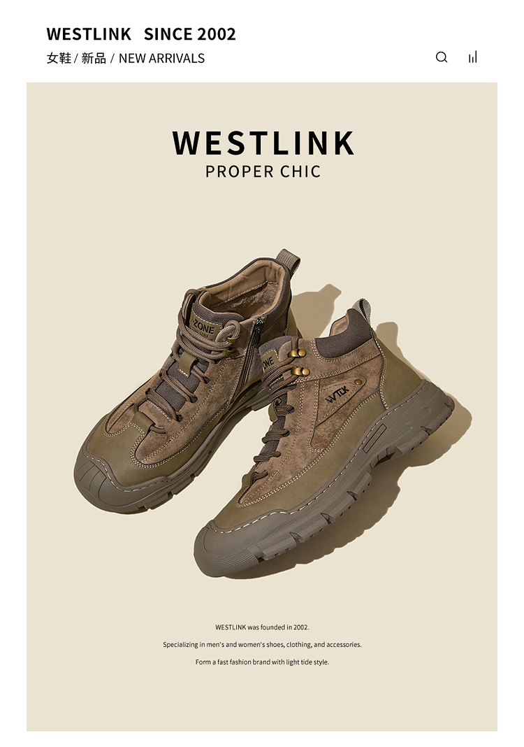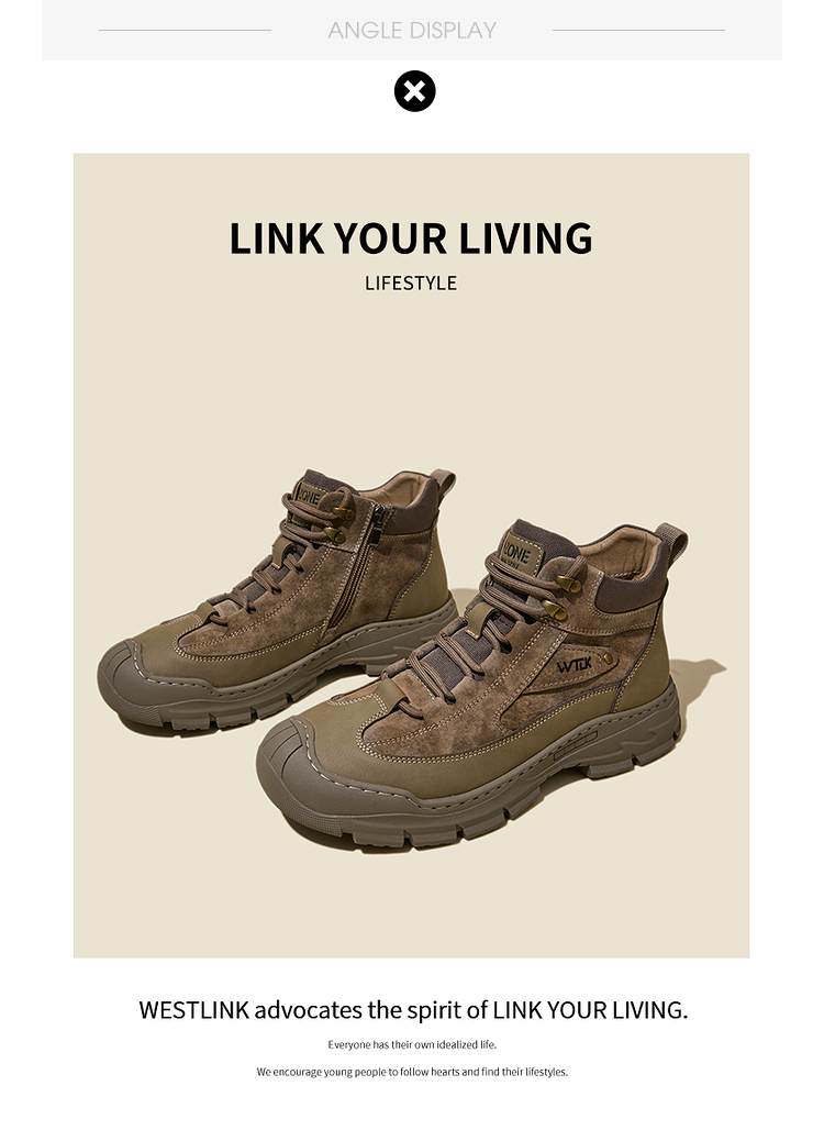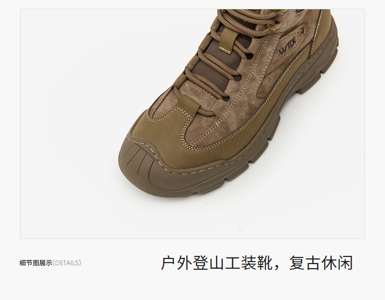 西遇马丁靴登山鞋男2024新款秋冬美式复古圆头工装靴休闲系带短靴24145585