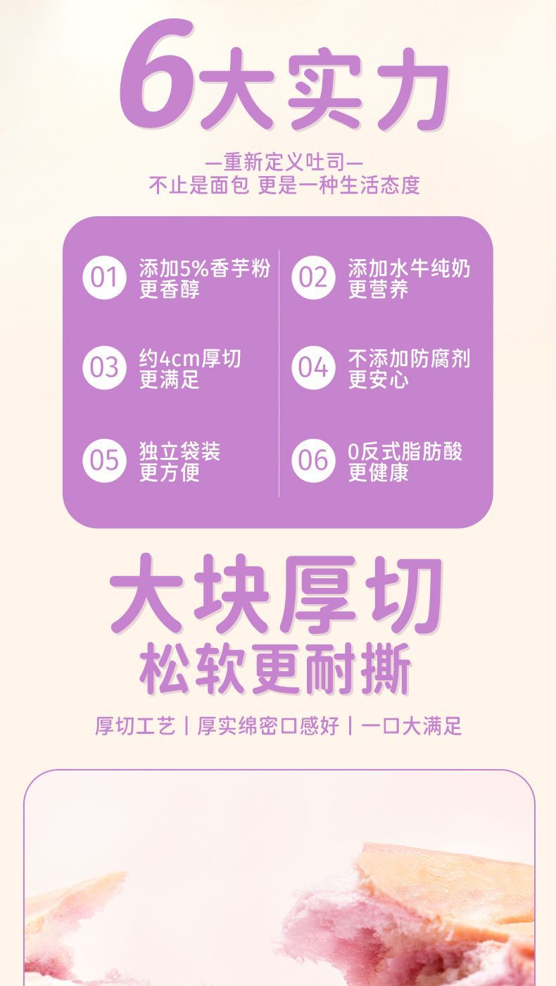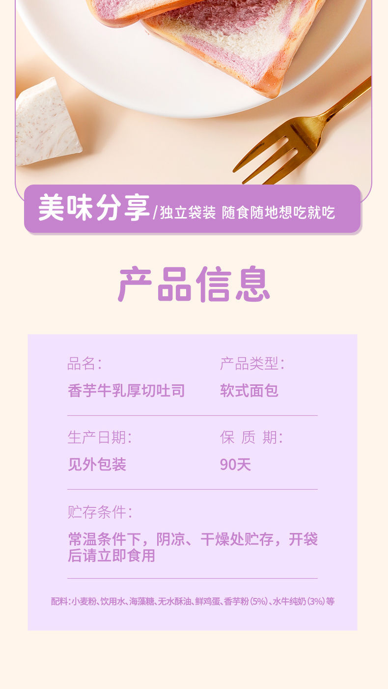 「松软美味!厚切满足」香芋牛奶厚切手撕芋泥奶香软面包 学生早餐代餐整箱休闲零食