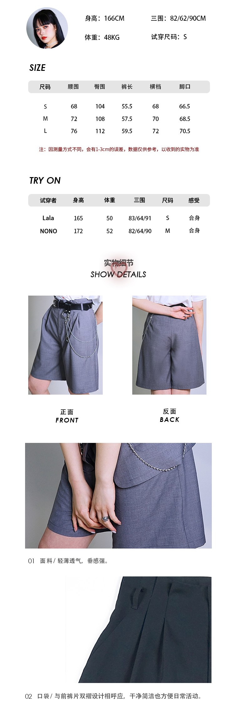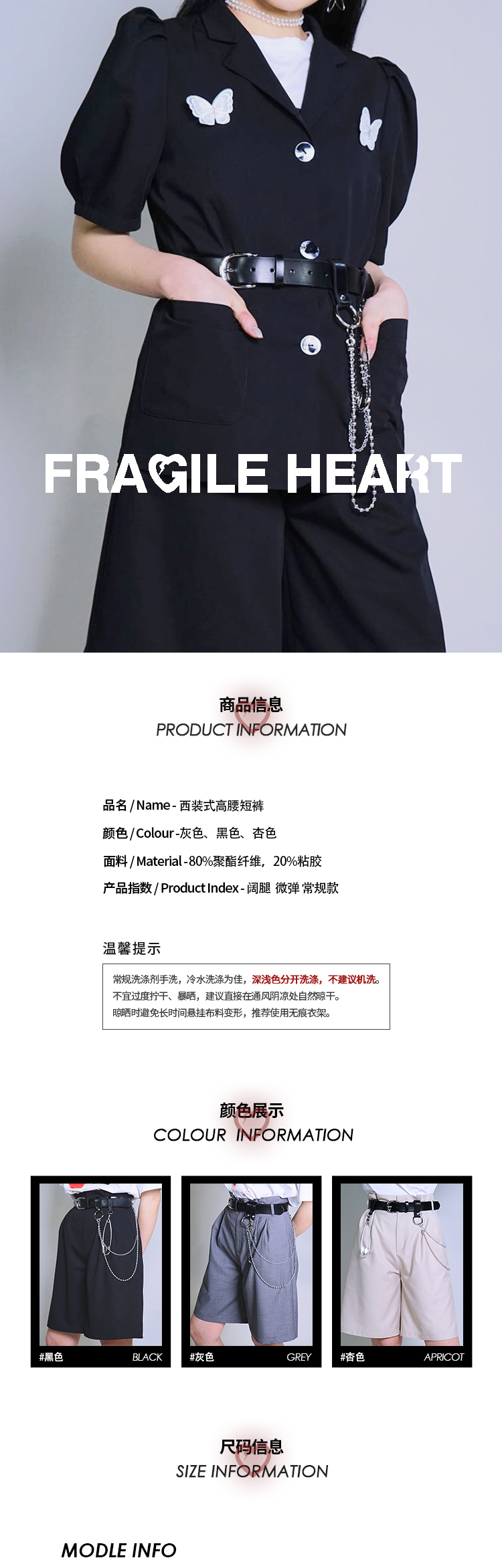 fragileheart原创设计软糯高腰工装显瘦西装阔腿裤直筒短裤女春季