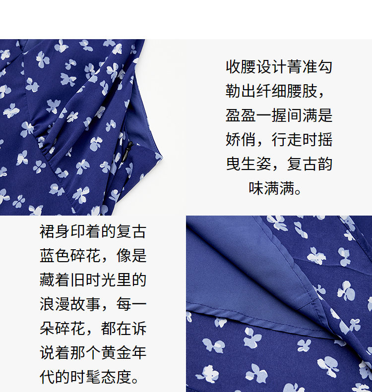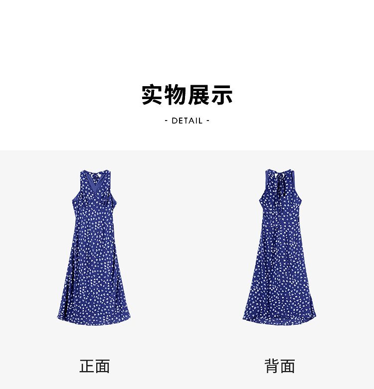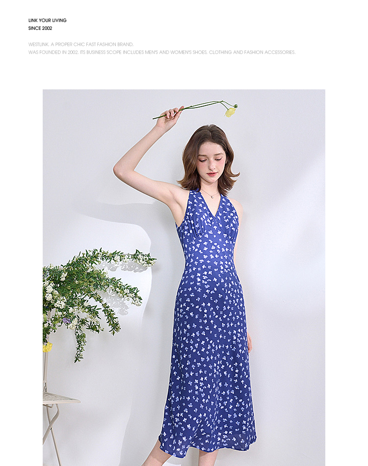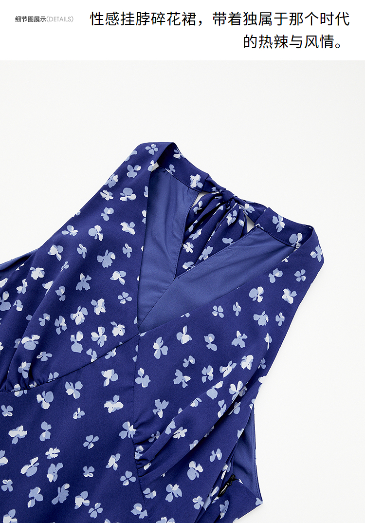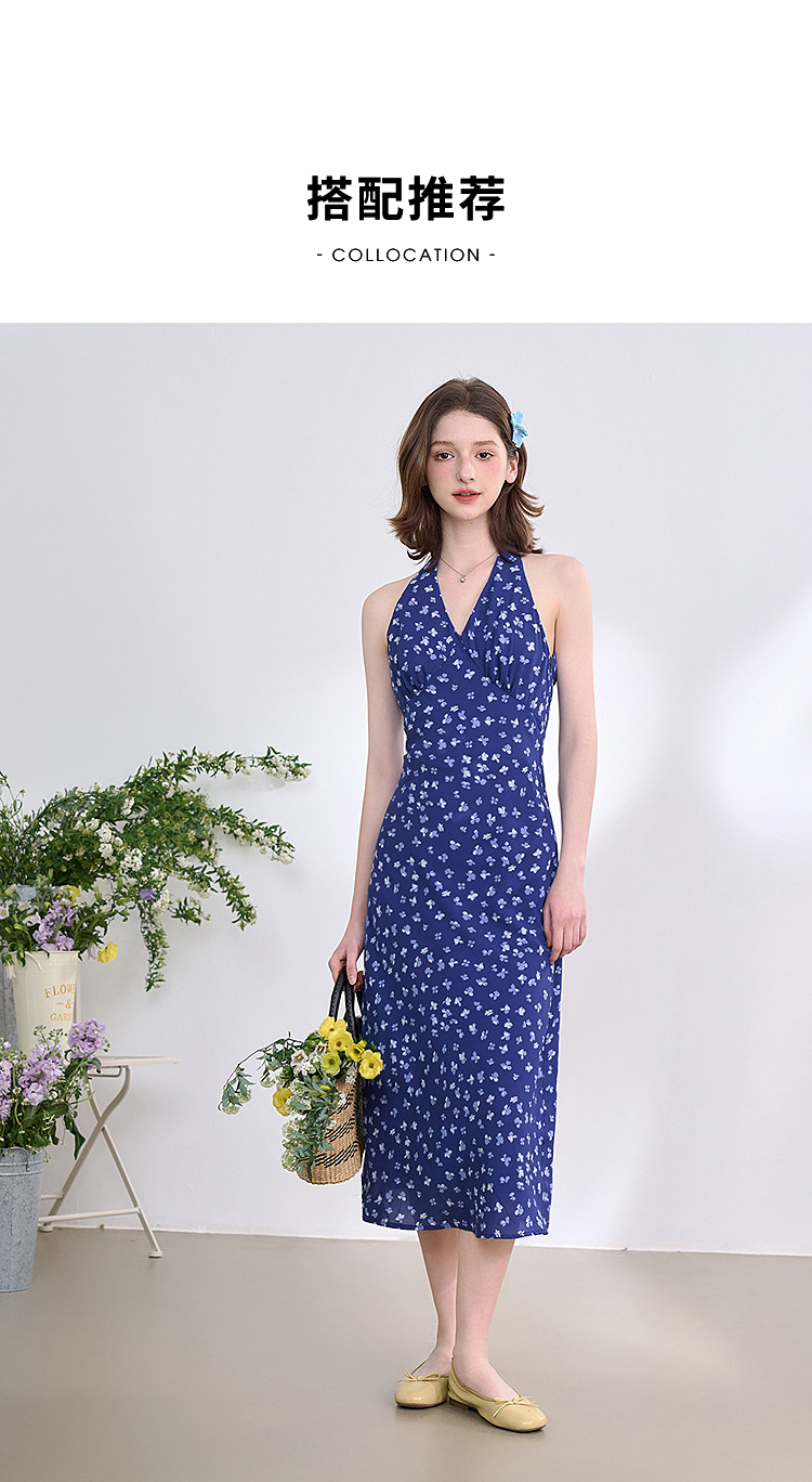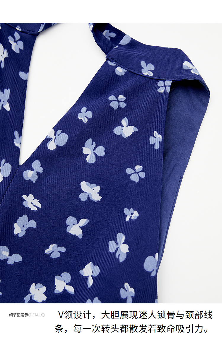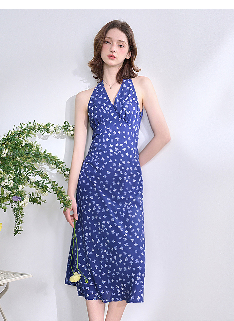 【限时秒杀】法式复古摩登小性感挂脖碎花裙女春夏V领收腰连衣裙V0950350