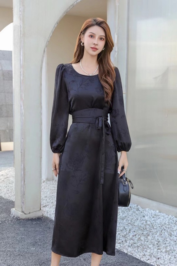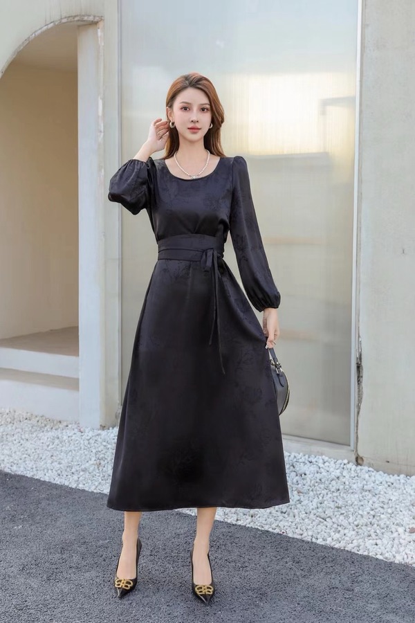 ELLA JADE 黑色光泽感提花收腰连衣裙 20007