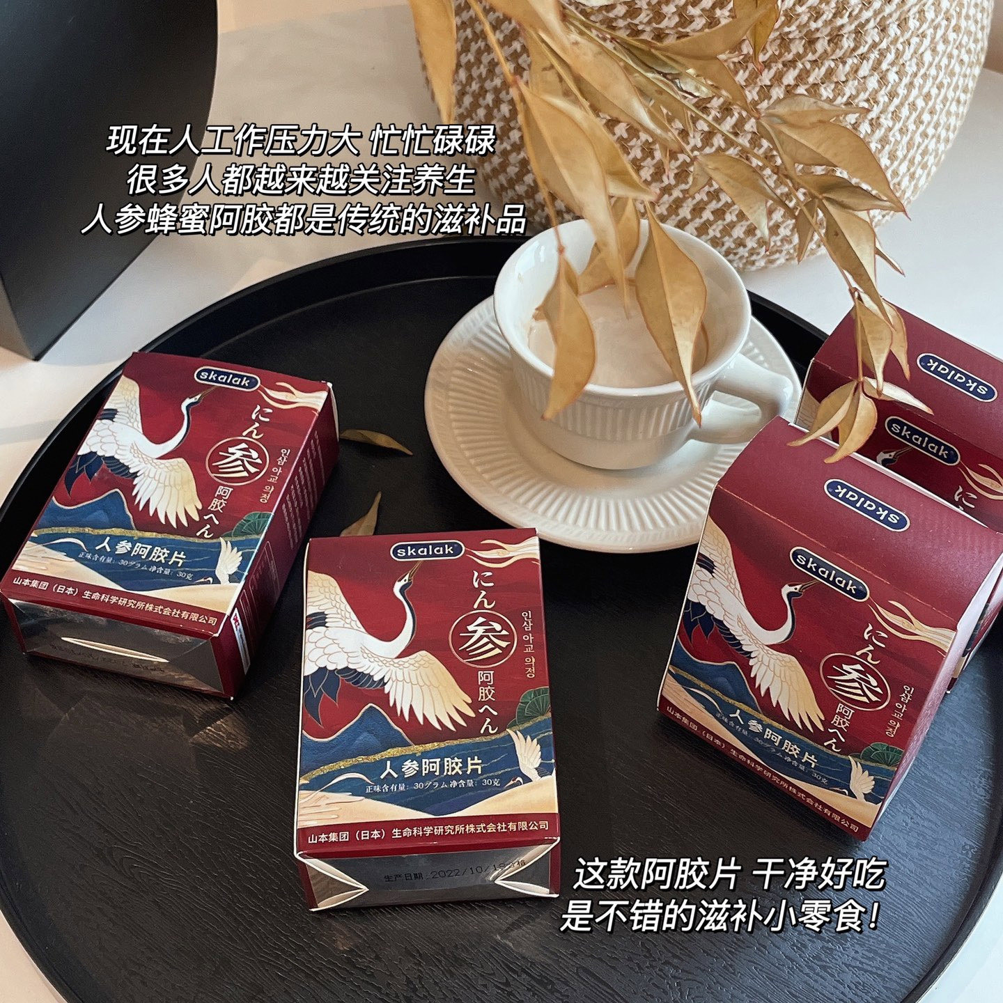 把苦涩的人参片做成了易保存且口感软糯香甜的小零食,还添加了阿胶和蜂蜜,都是对女生特别有好处的成分!
