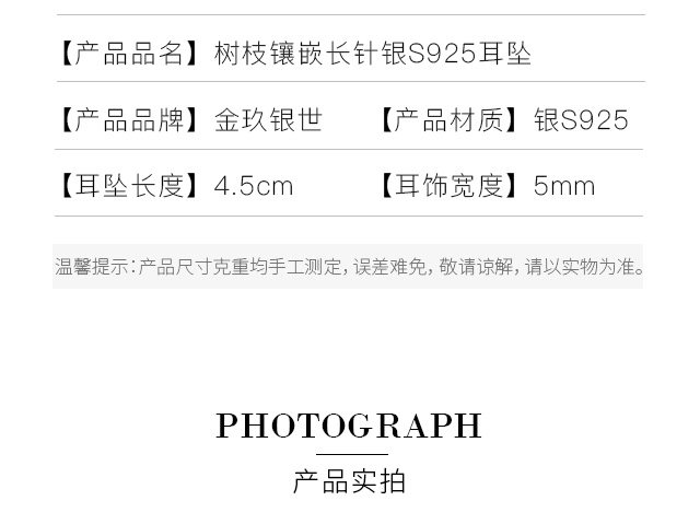 树枝银S925长耳饰
