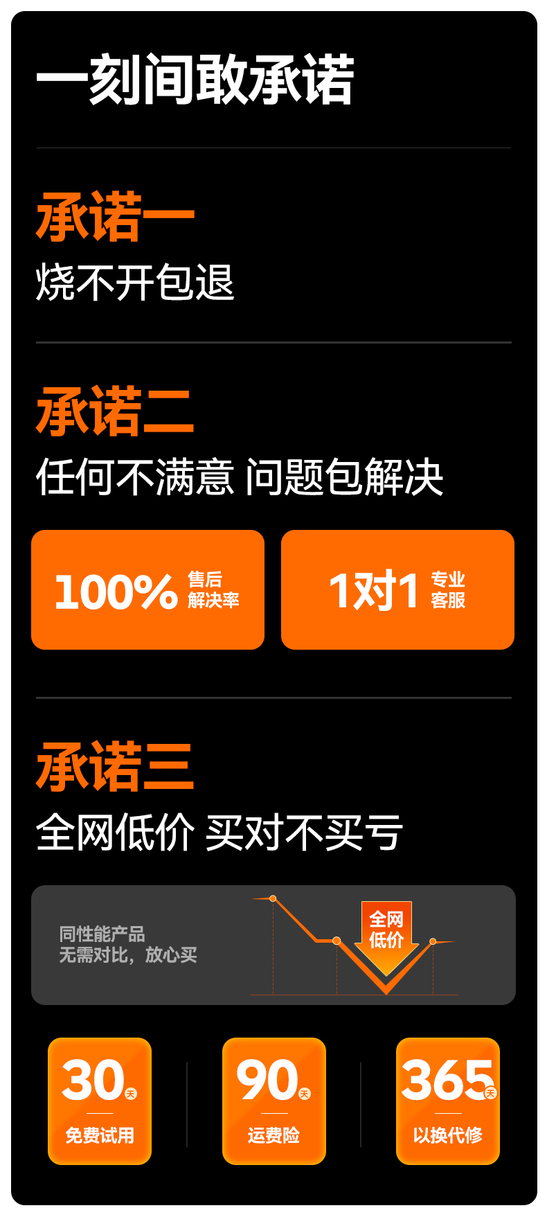 5. 产品自签收之日起,享1年质保(非人为问题)。人为问题需自费维修。