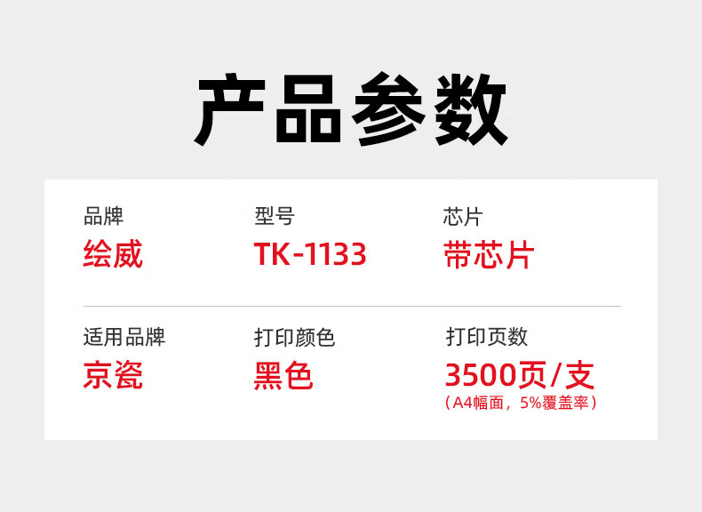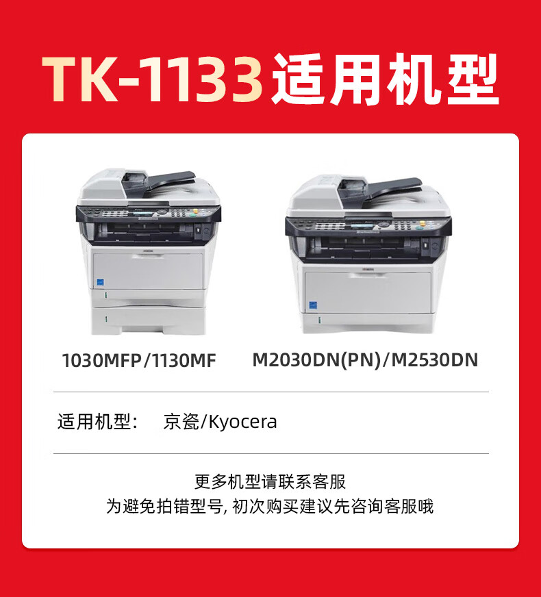 绘威TK-1133粉盒 适用京瓷Kyocera FS-1030MFP 1130MF M2030dn(PN) M2530dn复合机墨盒 碳粉盒 墨粉盒 碳粉