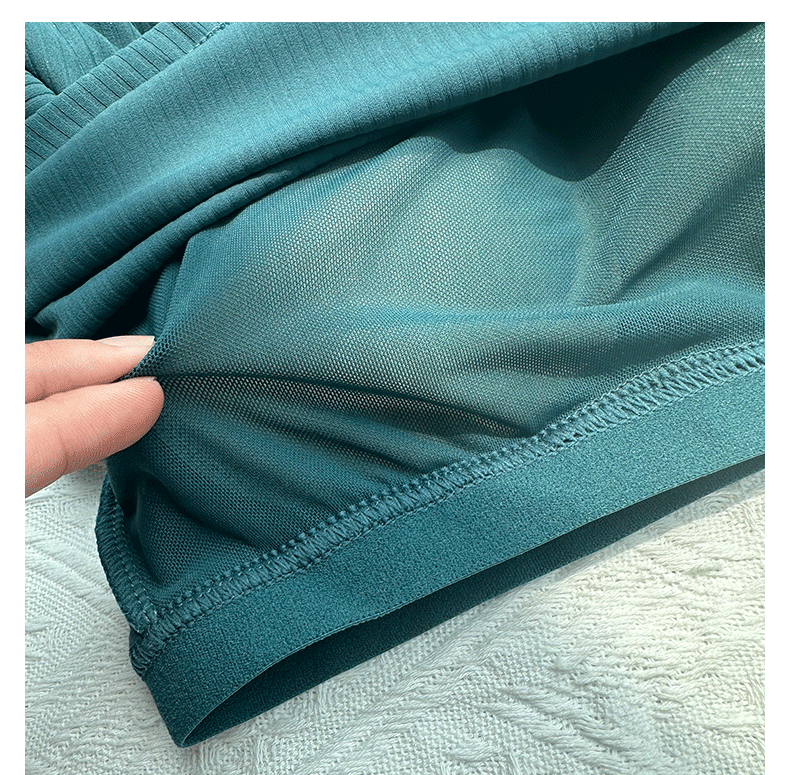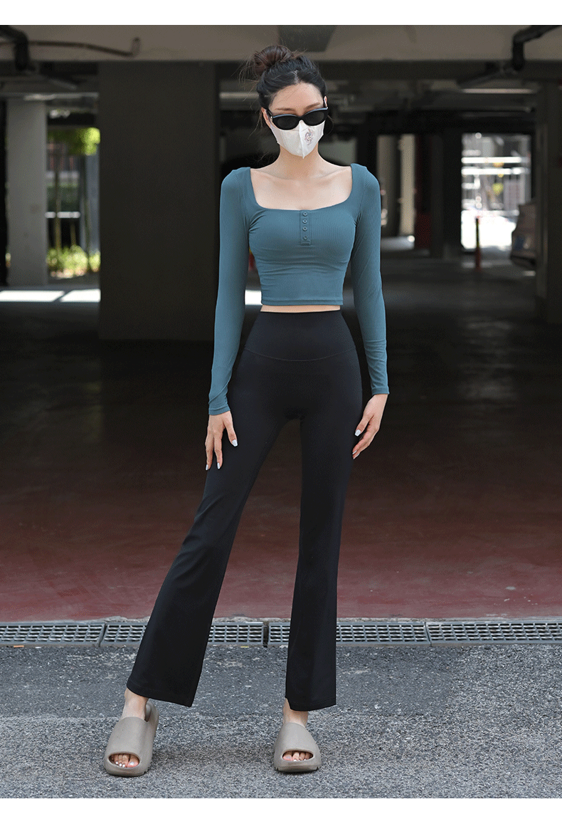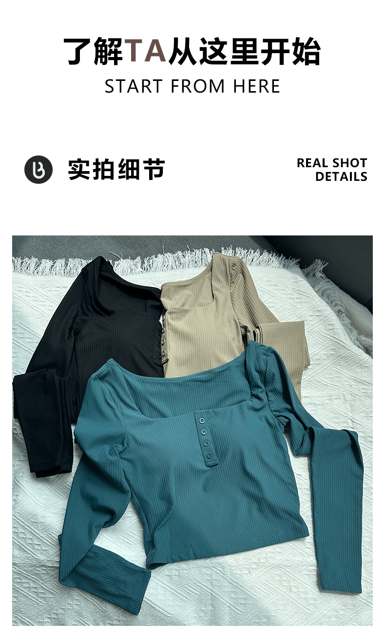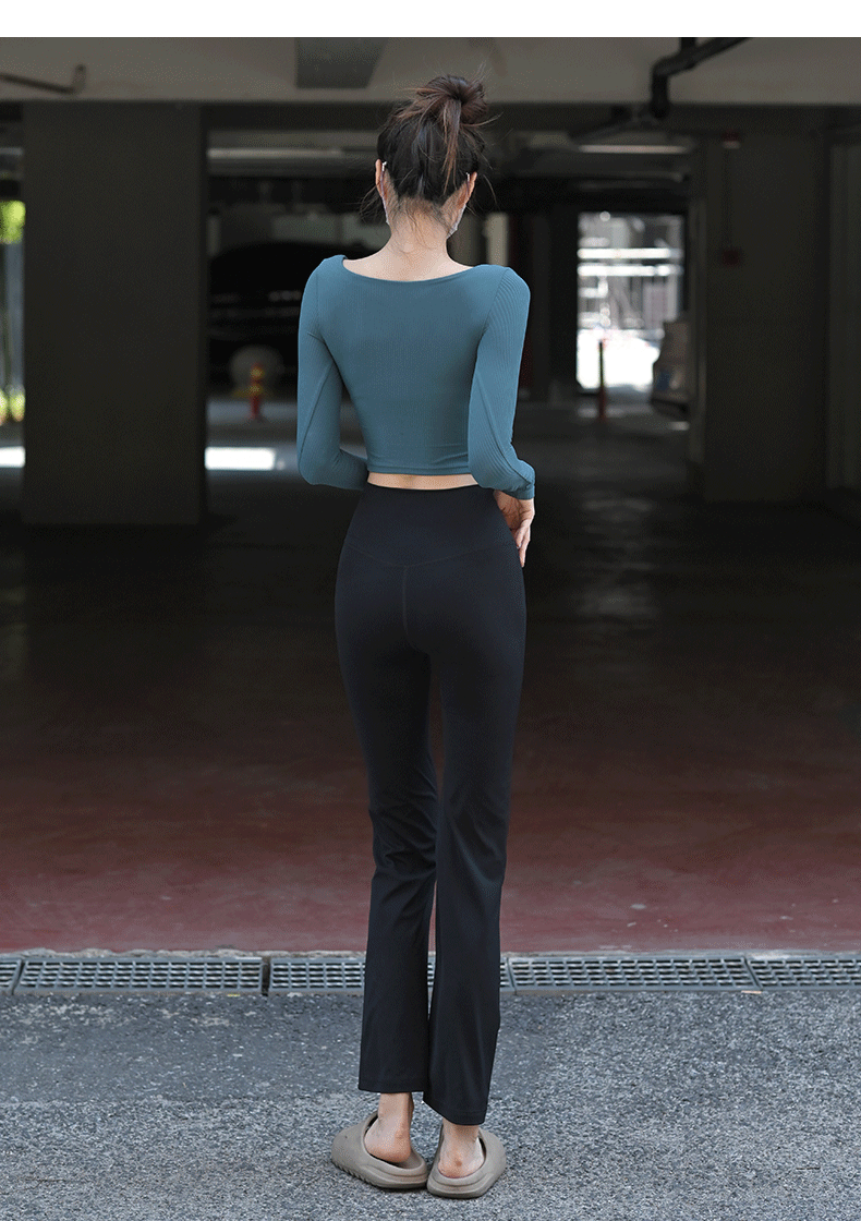 Beemen固定杯运动上衣女外穿紧身短款螺纹瑜伽长袖t恤