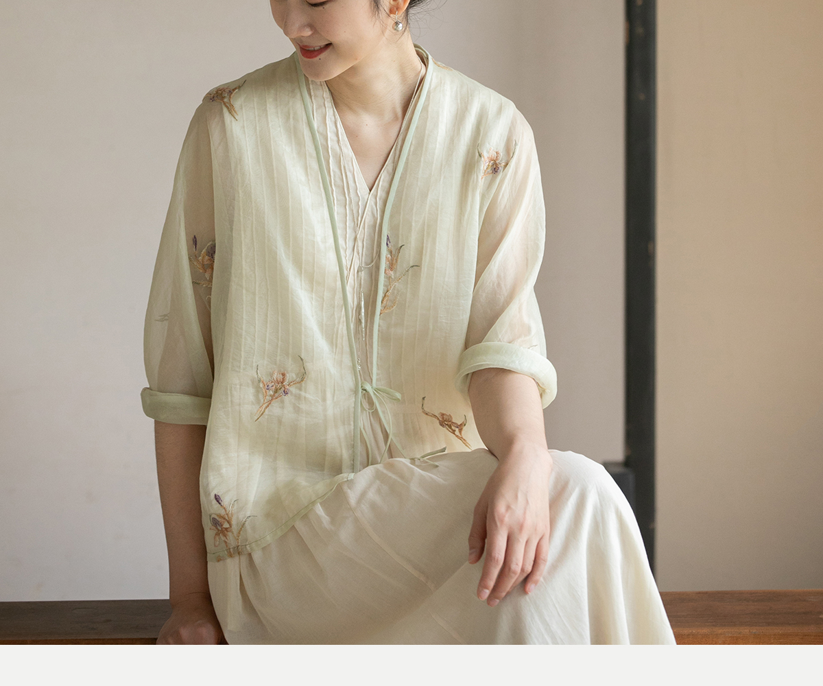 牧衣游原创 炒色匹绣桑蚕丝衬衫清凉百搭文艺轻薄百搭防晒衫 恩归