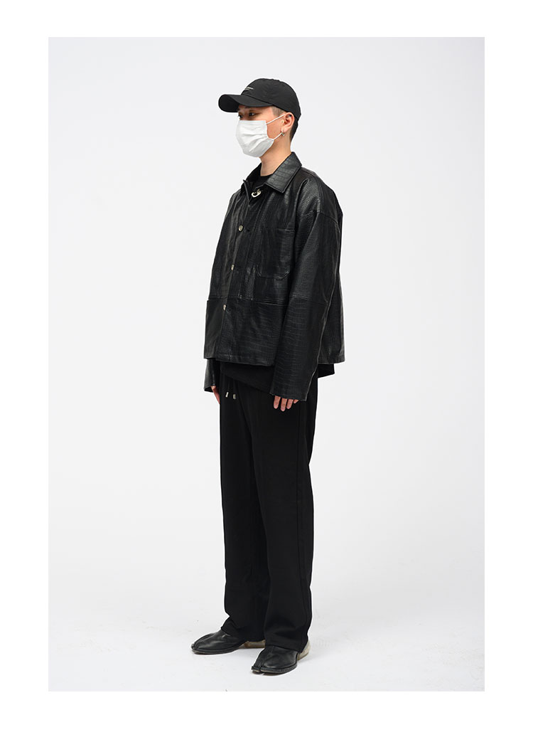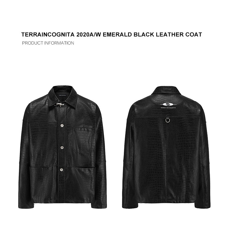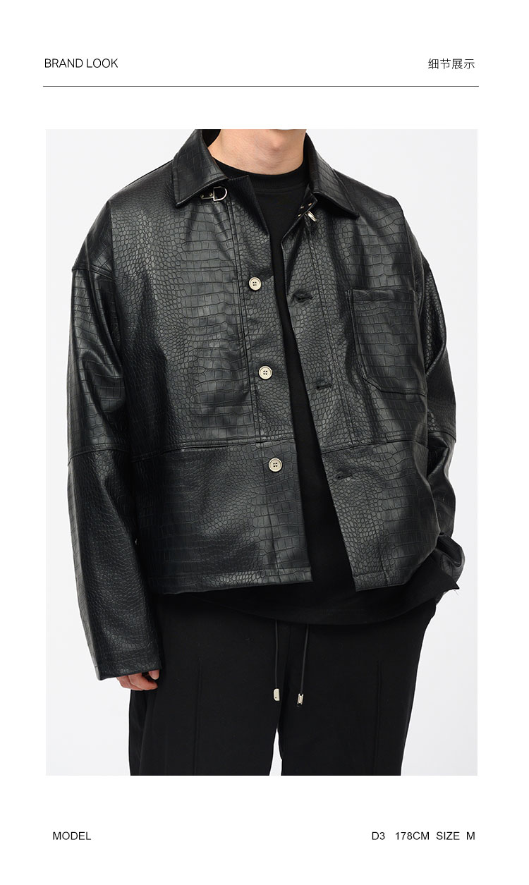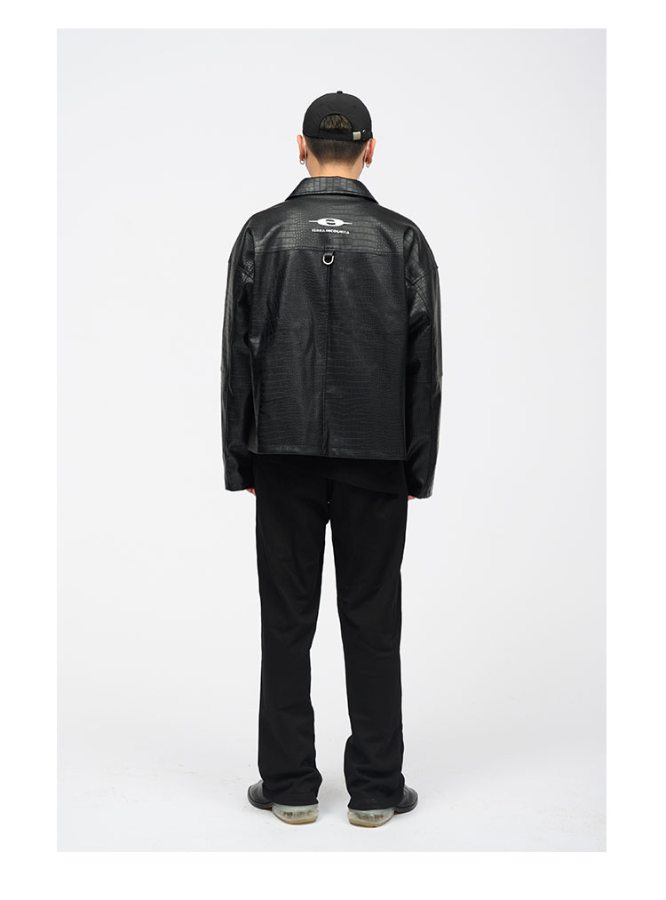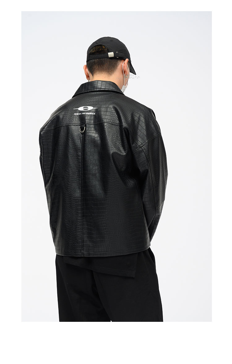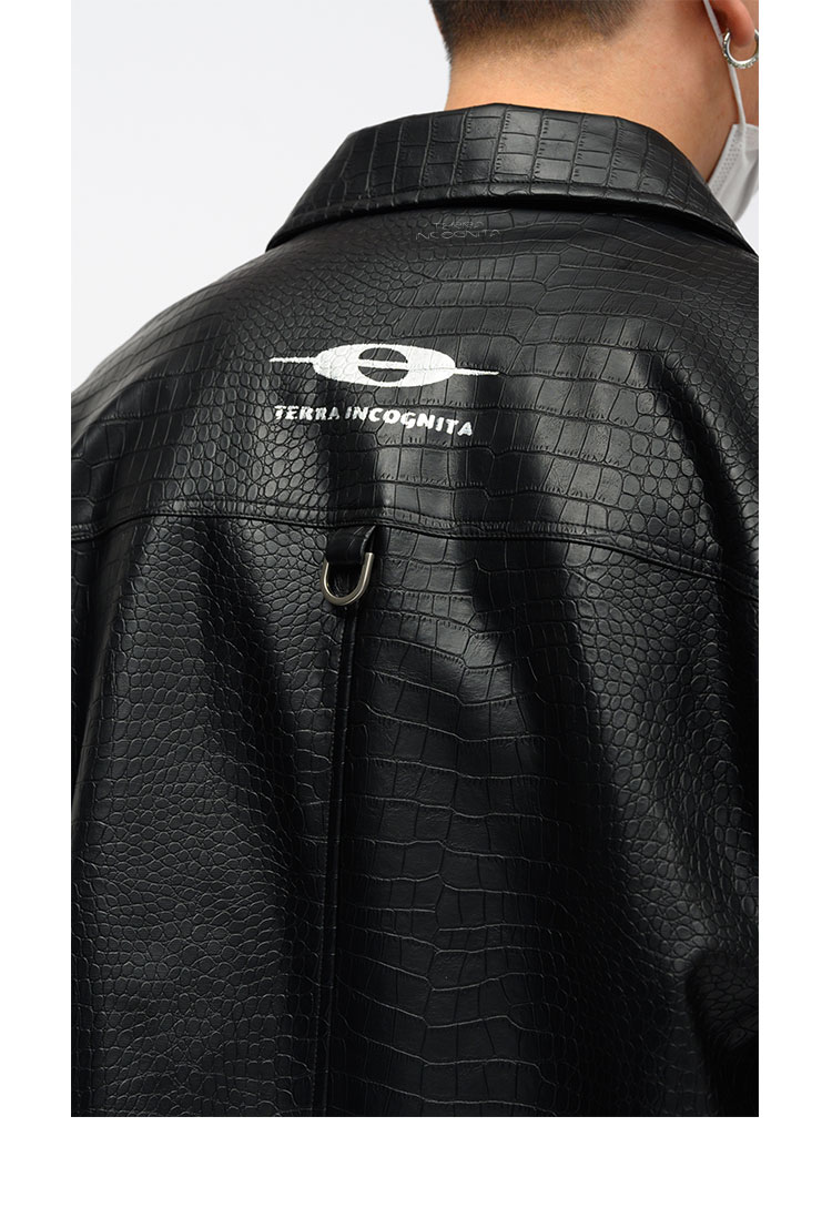 TERRAINCOGNITA新品PU皮短款鳄鱼纹皮衣宽松廓形百搭休闲外套男女