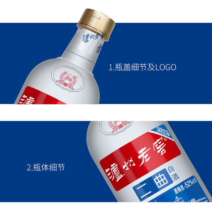 【头曲官旗】52度 泸州老窖二曲白酒(水晶磨砂2017版)500ml*6