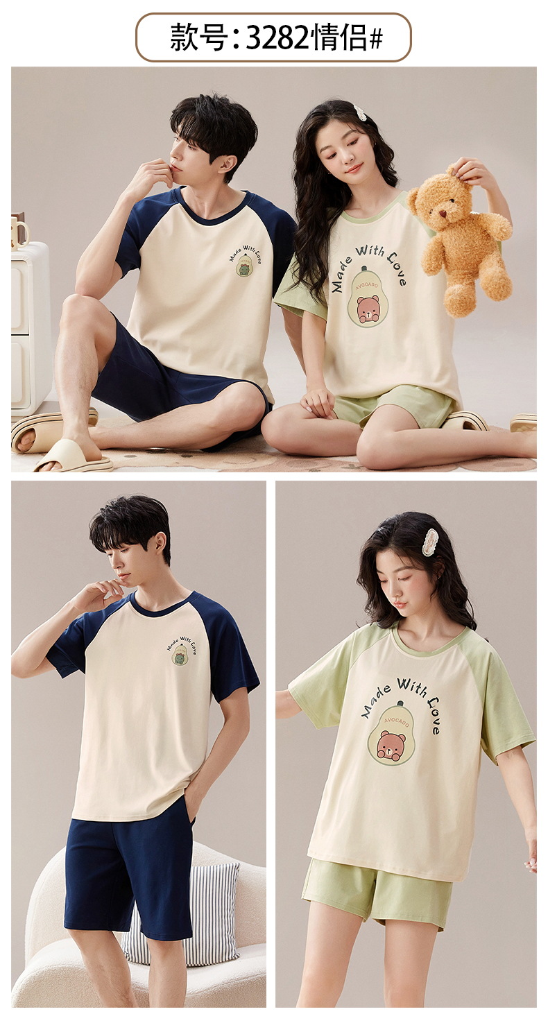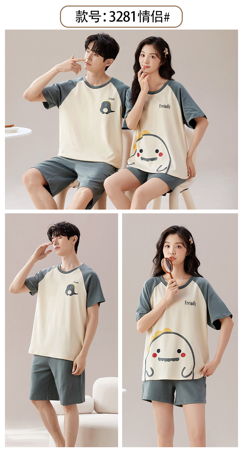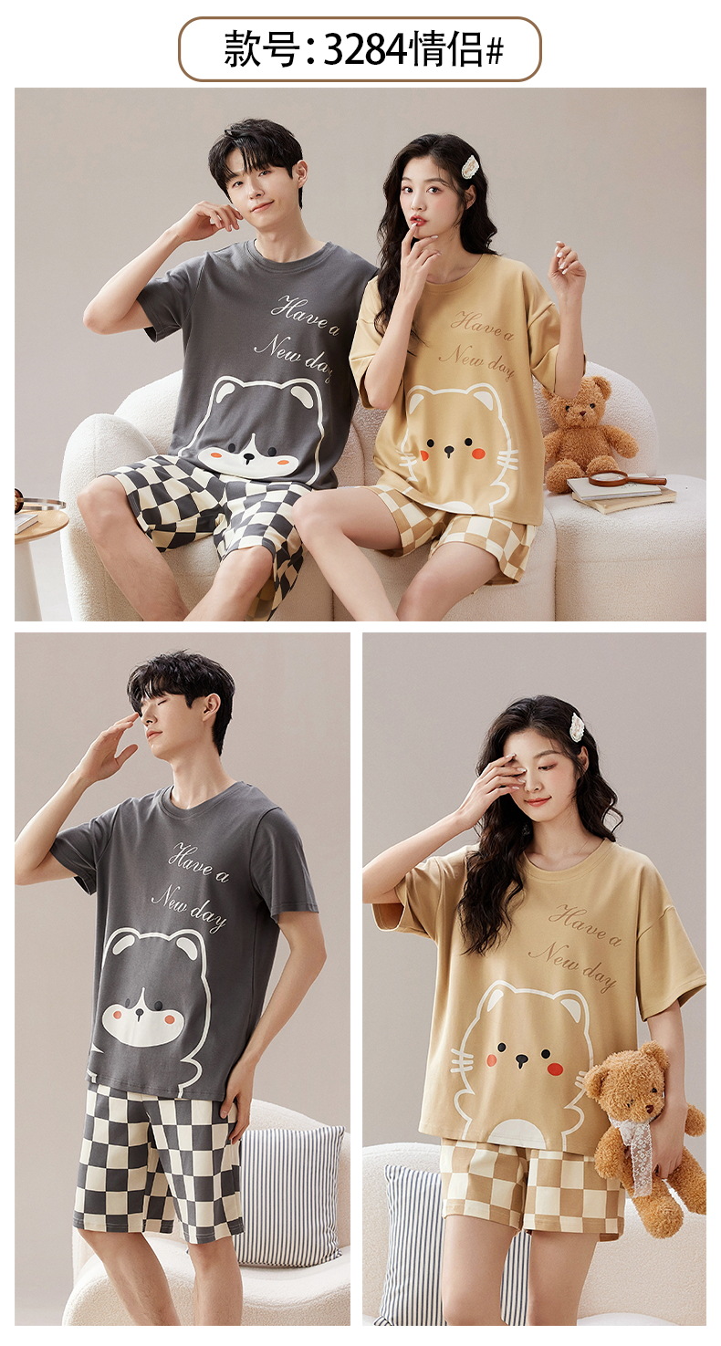 情侣睡衣夏季短袖棉质薄款卡通男女士两件套装家居服夏天新款新品新款新品