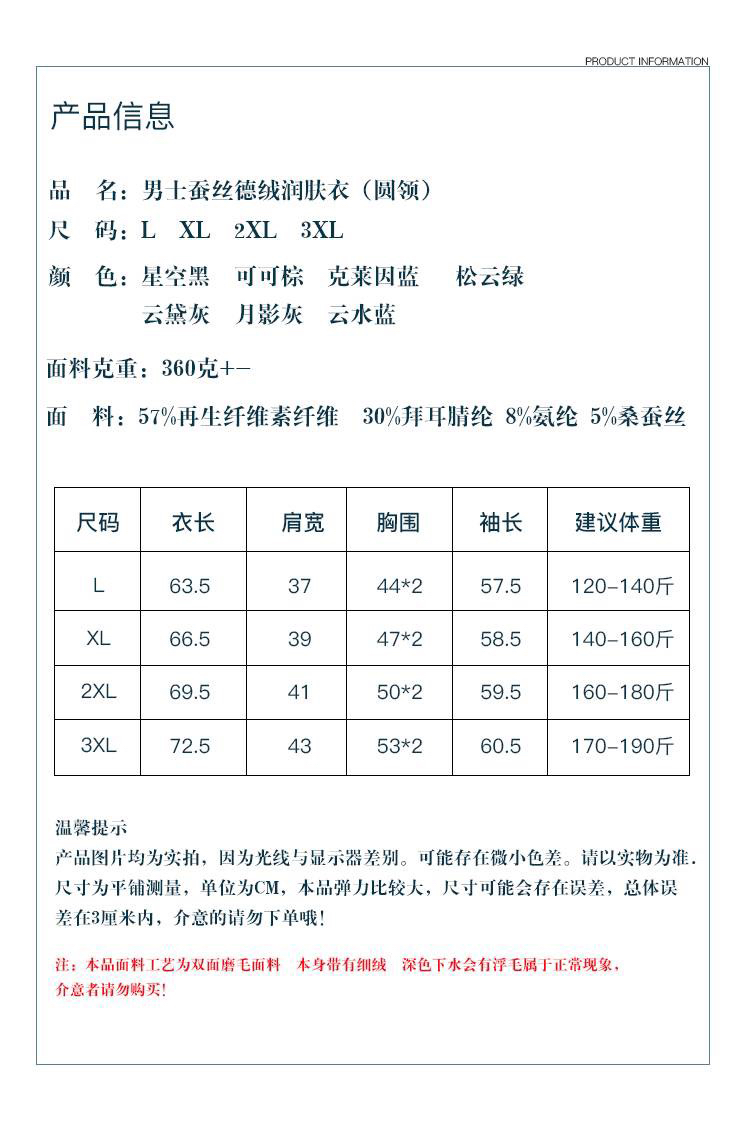男款德绒3.0版蚕丝恒温衣(圆领)