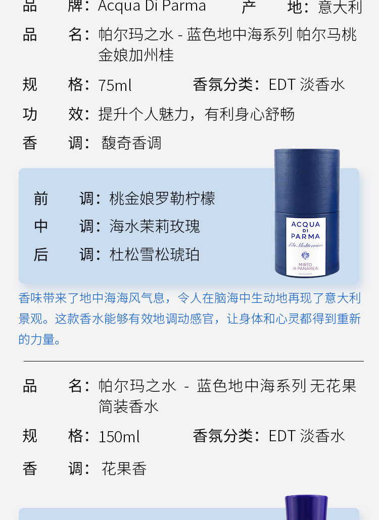 新品 帕尔玛之水香水桃金娘无花果馥桂